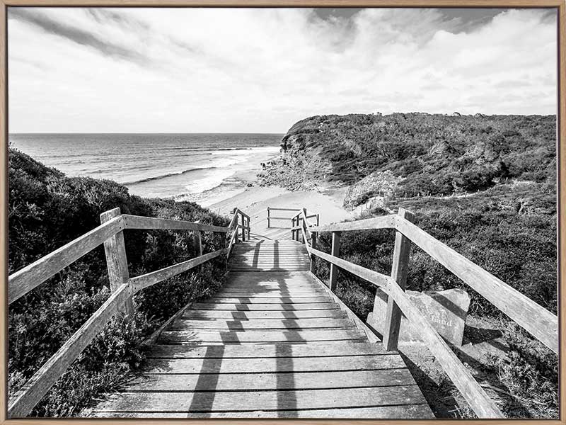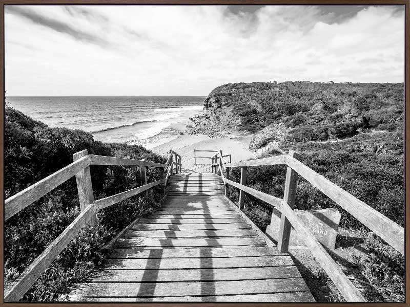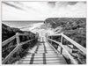 Bells Beach I Poster Print. This black and white photograhic poster print of the boardwalk going to the famous Bells Beach landmark which is loved by surfers the world over. Pairs with Bells Beach II Poster.
