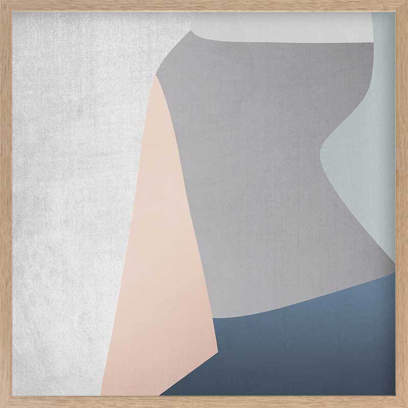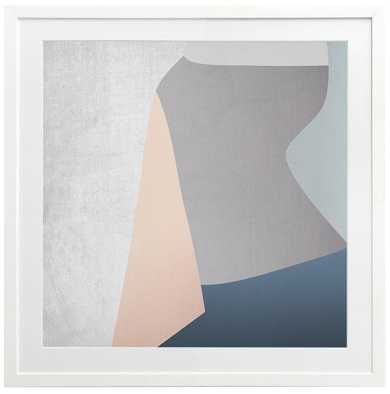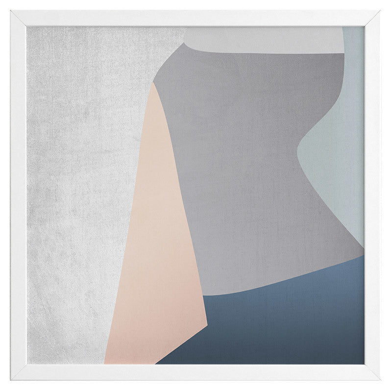 Belvedere Framed Print: An abstract artwork featuring clean lines and shapes in muted grey, blue, peach and purple tones. 2018 AUTUMN/WINTER COLLECTION: CONTINUUM
