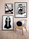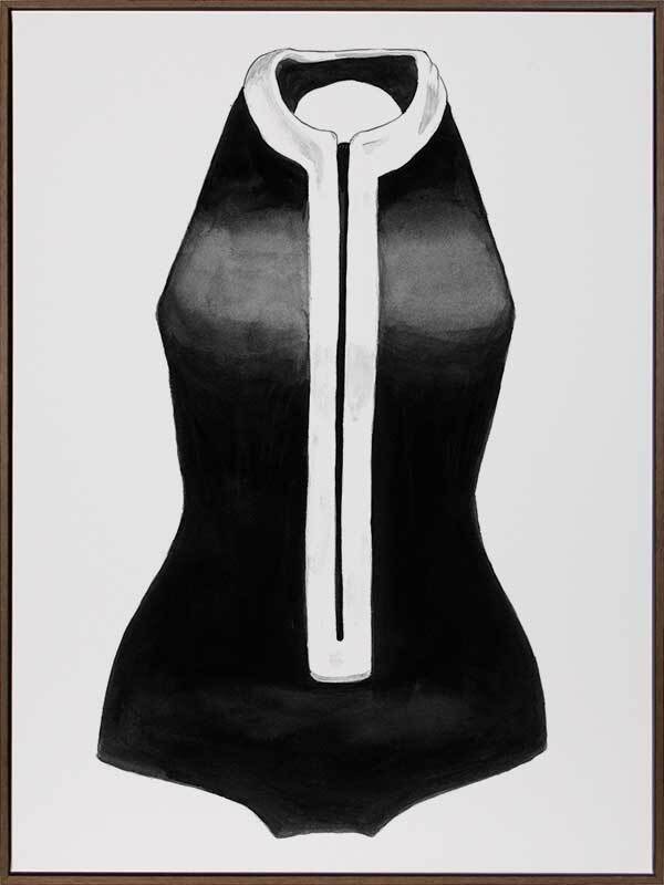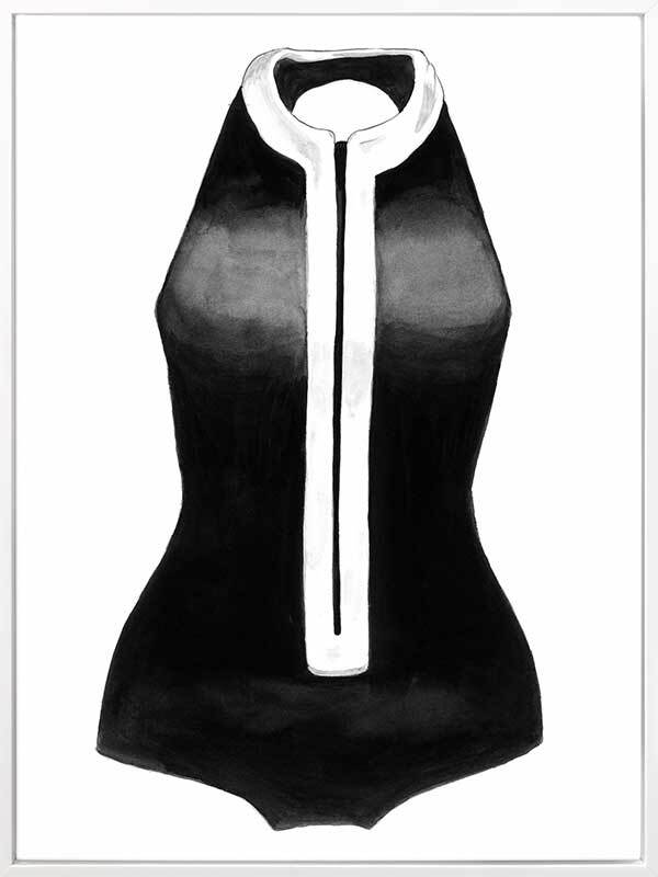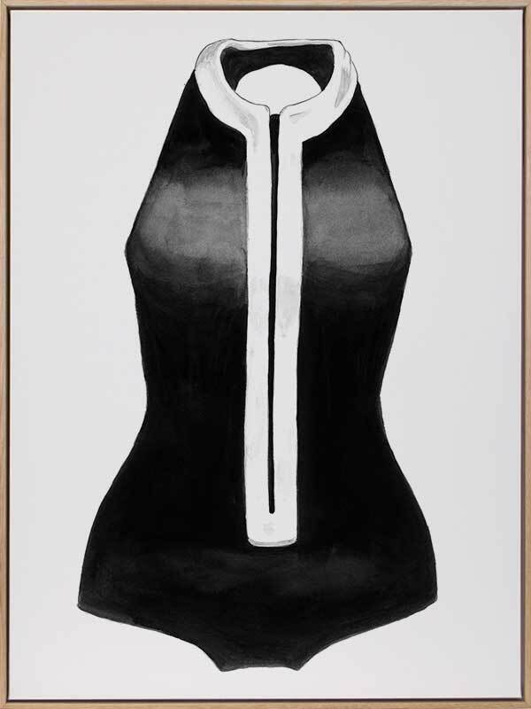 Bette Canvas Art Print: A detailed black and white watercolour illustration of a vintage inspired bathing suit. 2017 SPRING/SUMMER COLLECTION: RHAPSODY