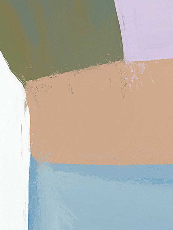 Bimberi Peak Wallpaper - Playful and bold, this abstract landscape wall mural design features bold blocks of colour in a pastel blue, clay and purple colour palette.