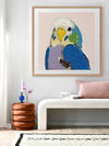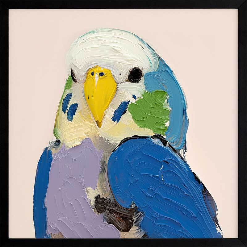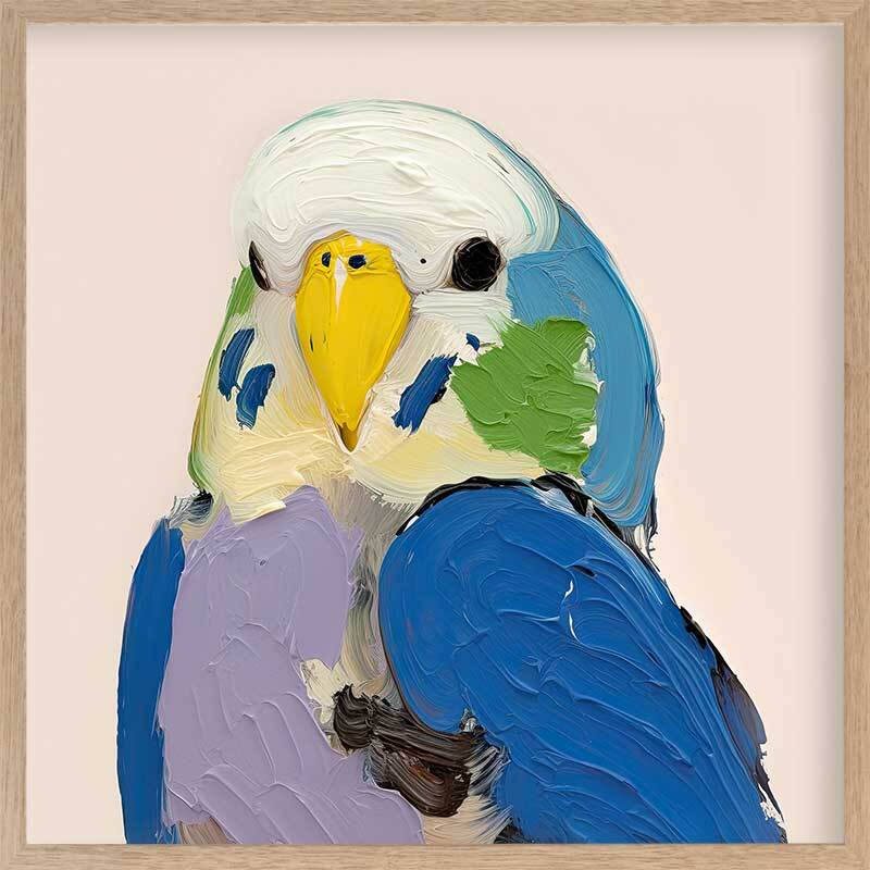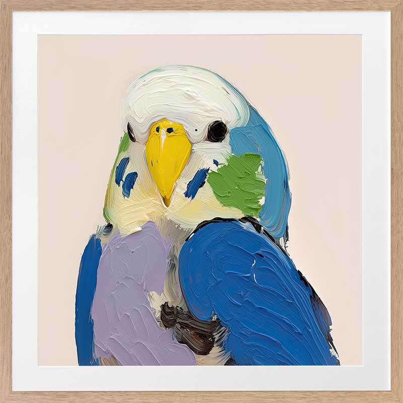 Birdwatching Framed Art Print - Birdwatching on vacation? Yes, please. This gorgeous modern art print depicts a Pale-headed Rosella with its yellow beak, blue and green cheeks, and multicolour feathers, using visible brush strokes and rich colours. Bringing the calming energy of a good birdwatching session to your space, this artwork is the perfect pop of colour with blue, green, purple, and yellow tones against a soft pink backdrop.