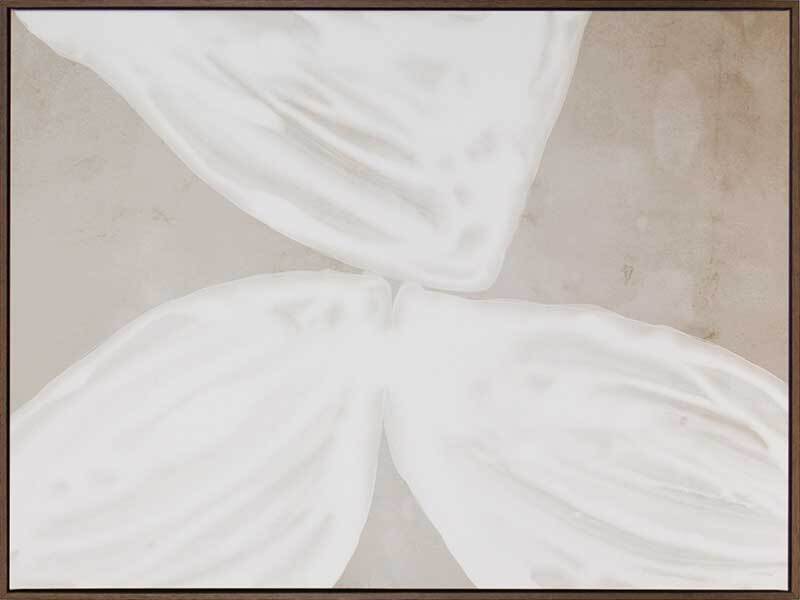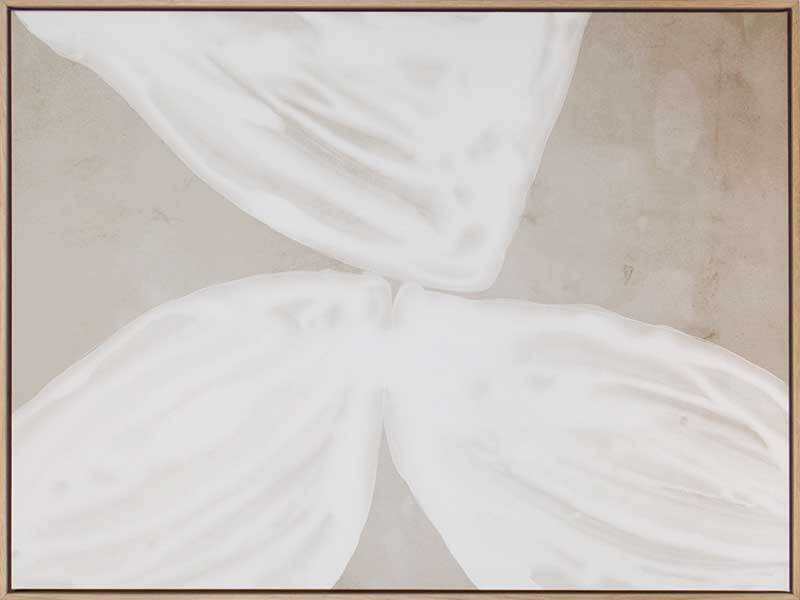 Blanc Spaces I Canvas Art Print: A soft, neutral artwork that features a white ink monoprint of geometric on a parchment style background. Pairs with Blanc Spaces II & III. 2019 AUTUMN/WINTER COLLECTION: ODYSSEY