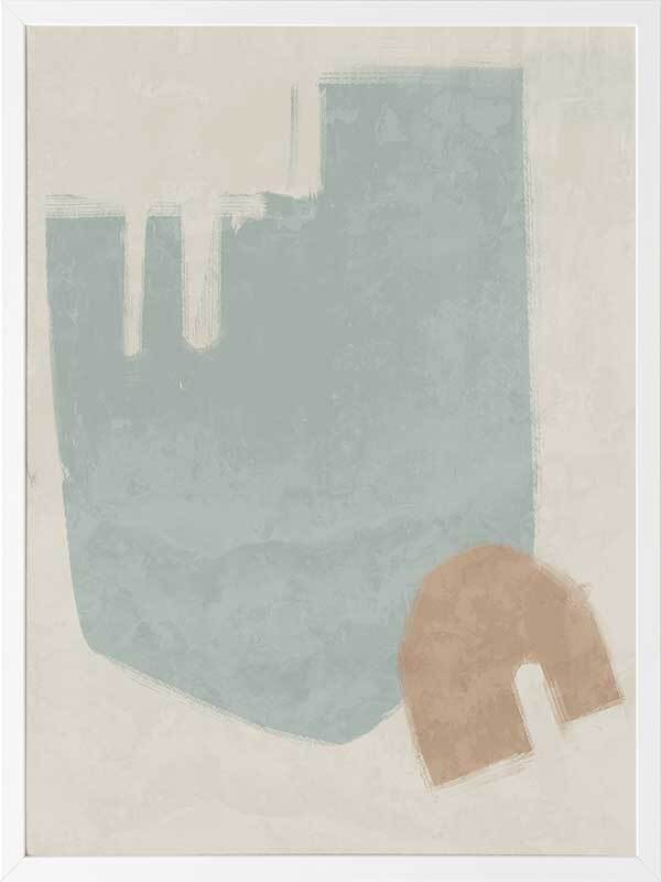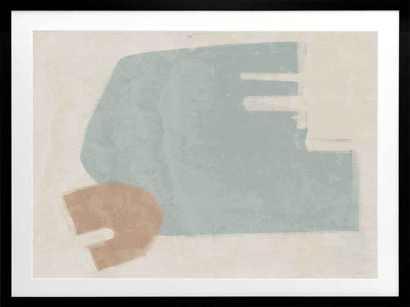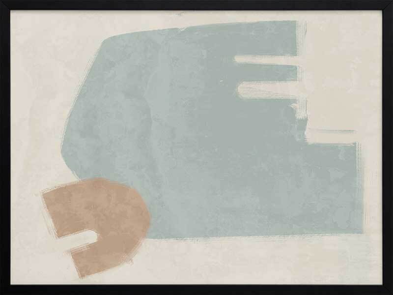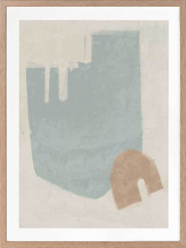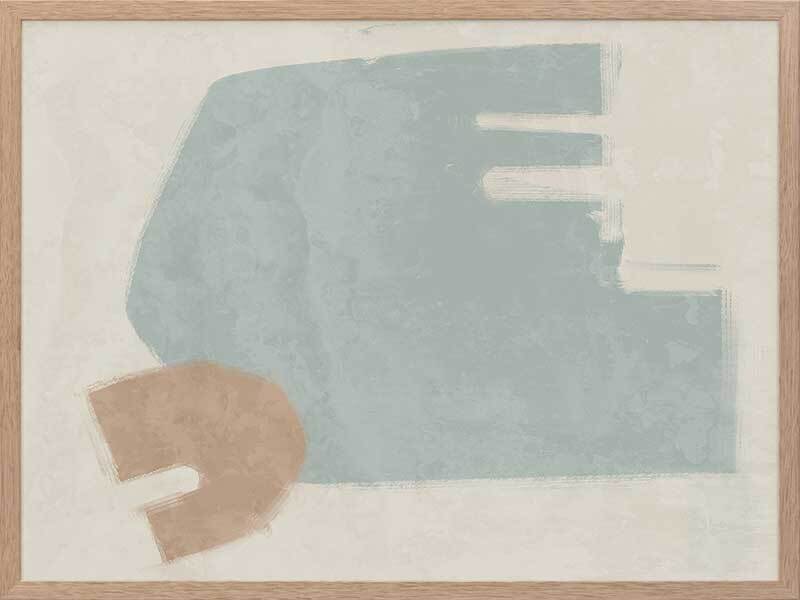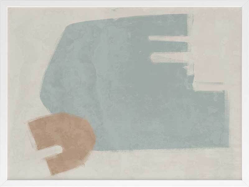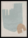 Blasé Light Blue Framed Art Print - Perfect for creating interest in your space in a subtle way, this abstract artwork features a contrast between curves and straight lines, with brush strokes for added texture. Palette includes light blue, beige, and a light sandy colour.
