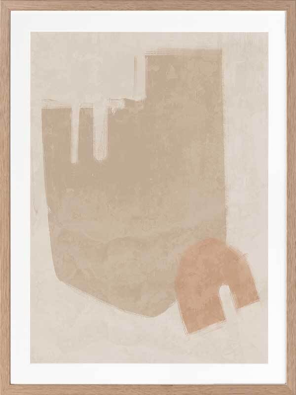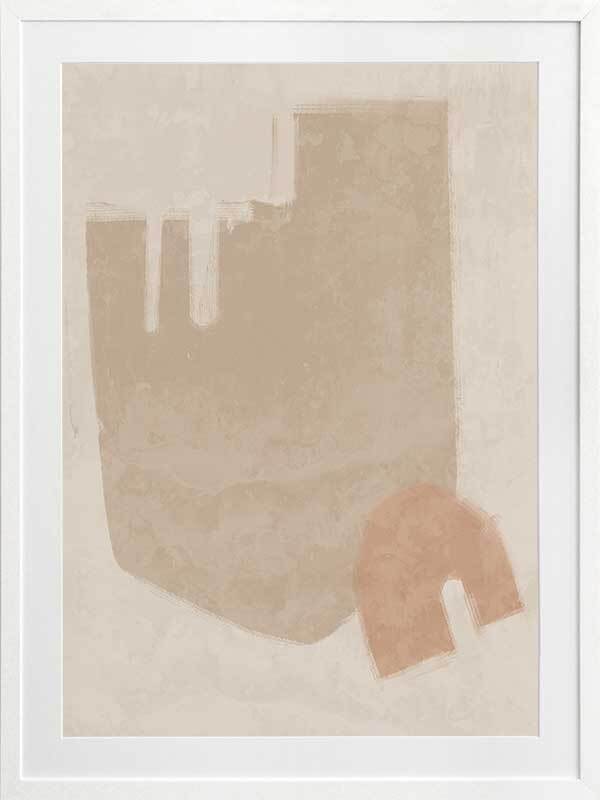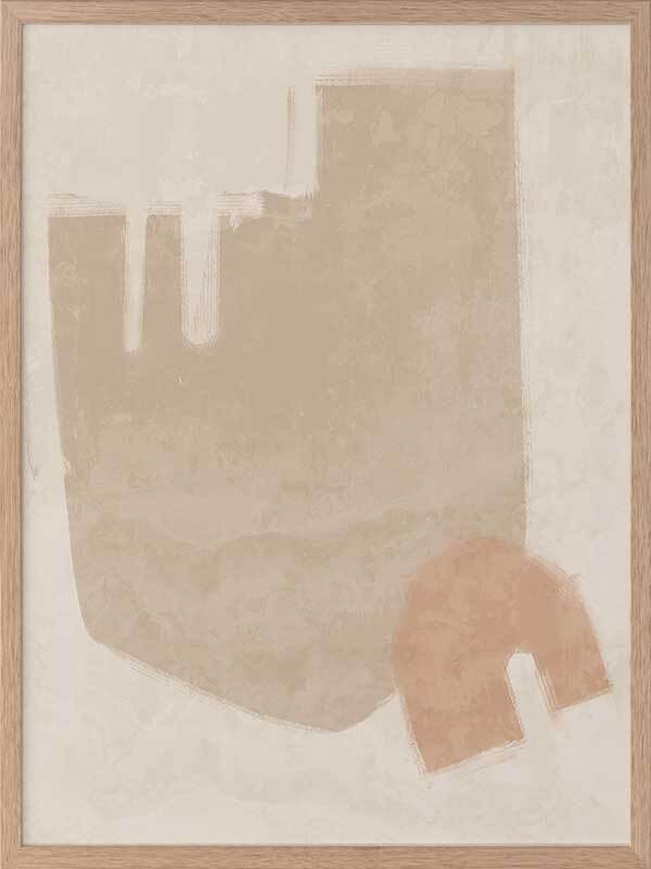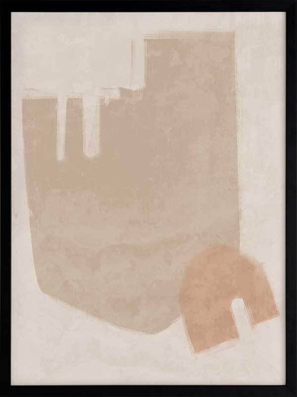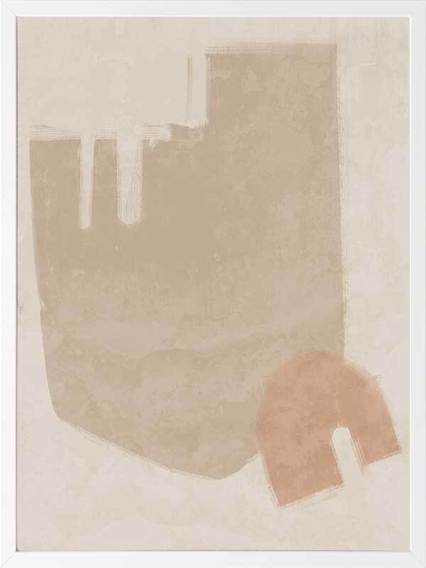 Blasé Neutral Framed Art Print - Perfect for creating interest in your space in a subtle way, this abstract artwork features a contrast between curves and straight lines, with brush strokes for added texture. Palette includes beige, a blush-toned shade, and a light sandy colour.