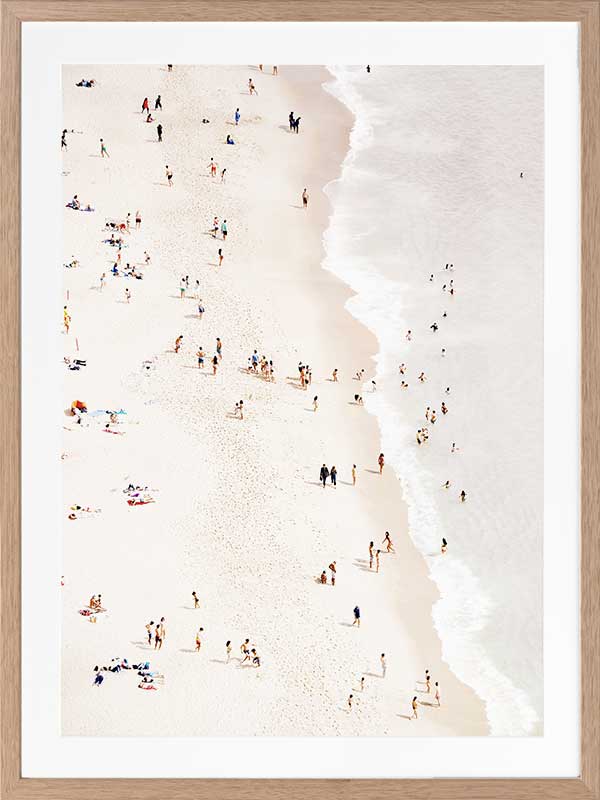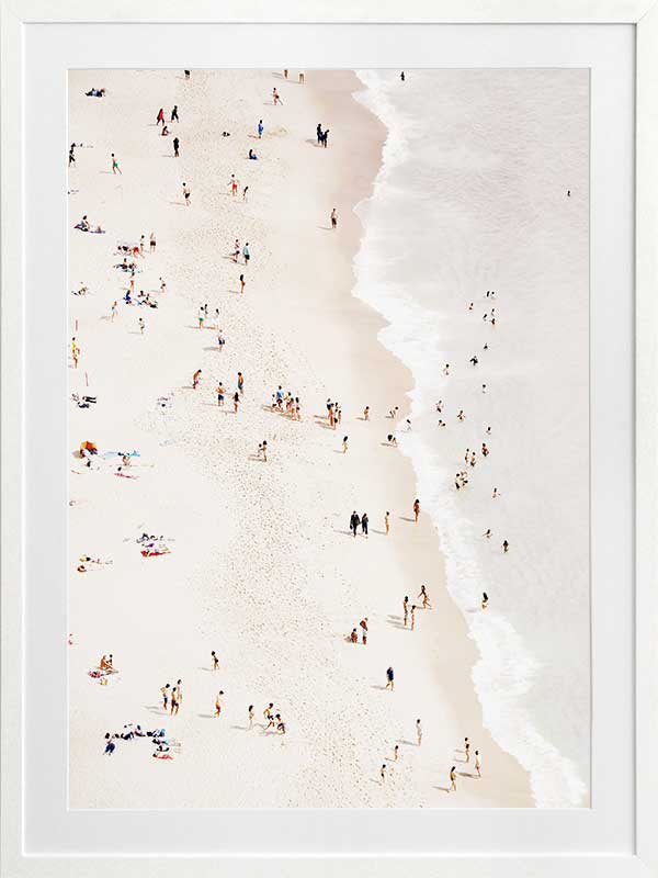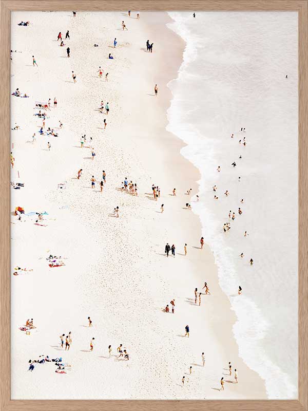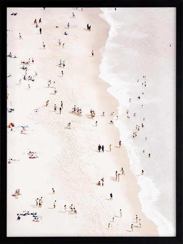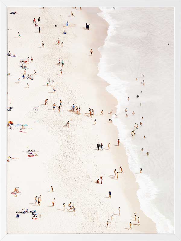 Bleached Beach Poster Print. Decorate any wall or space with the Bleached Beach Poster with a bird's eye view of the people enjoying the beach and warm sun. Warm up your space with this summertime vibe.