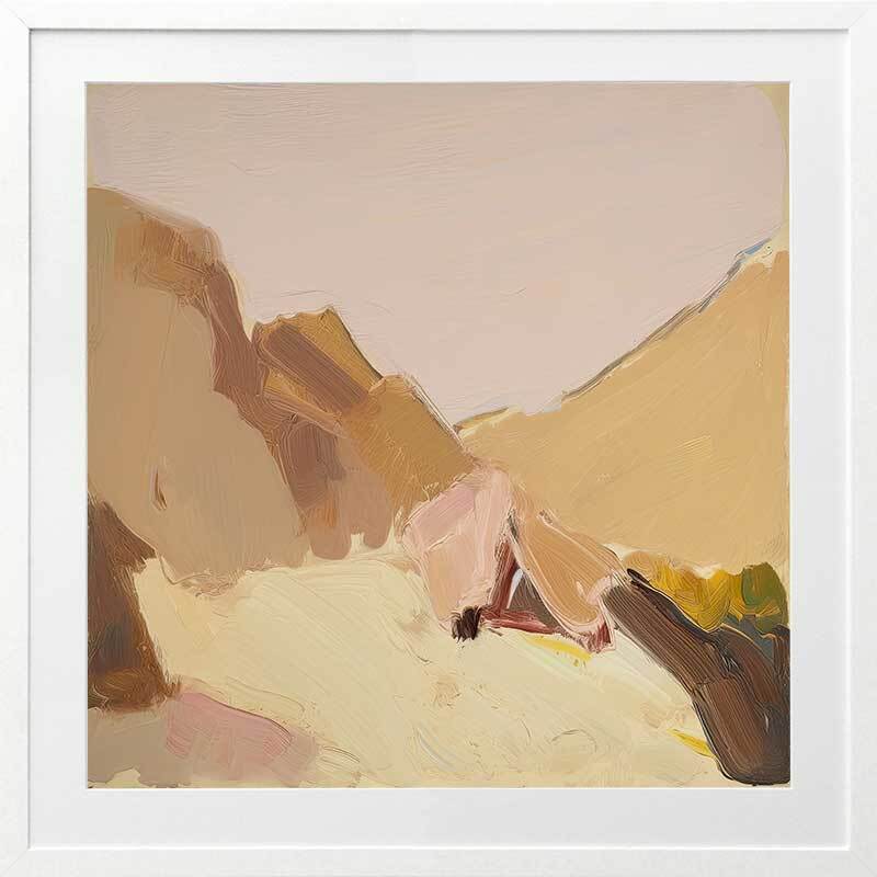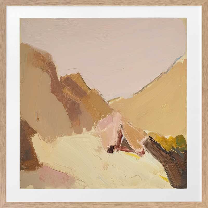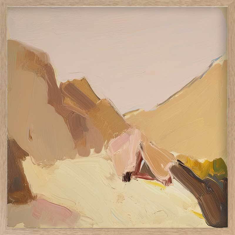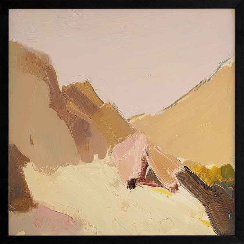 Blended Hills Framed Art Print - "Blended Hills" is an abstract masterpiece, where thick brushstrokes dance across the canvas, blending warm tones of beige and brown clay seamlessly. The artwork evokes a sense of serene landscape, as if hills and valleys were merging into one another in a harmonious dance of color and texture. Each stroke, captures the essence of nature's subtle yet captivating beauty, inviting viewers to immerse themselves in the tranquil rhythm of the painted terrain.