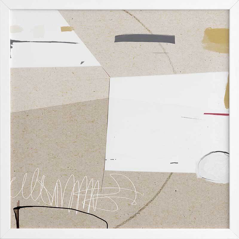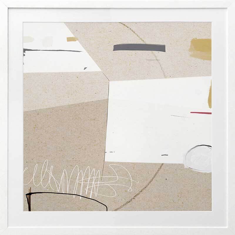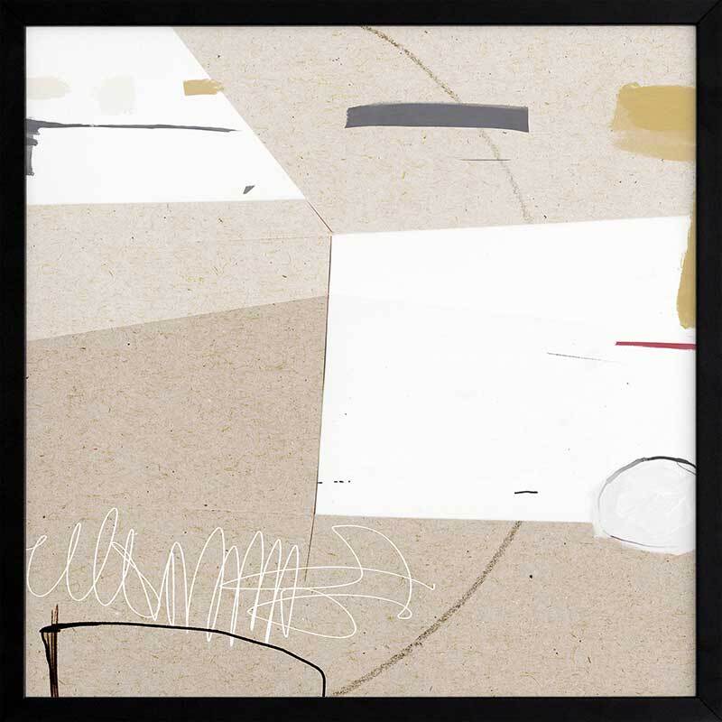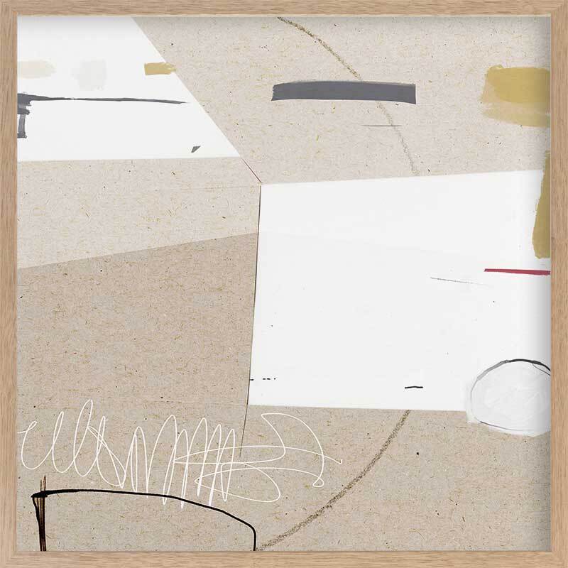 Block Framed Art Print - This abstract piece is designed to blend well with other styles of art and decor. Subtle off-white, beige and golden collage.