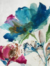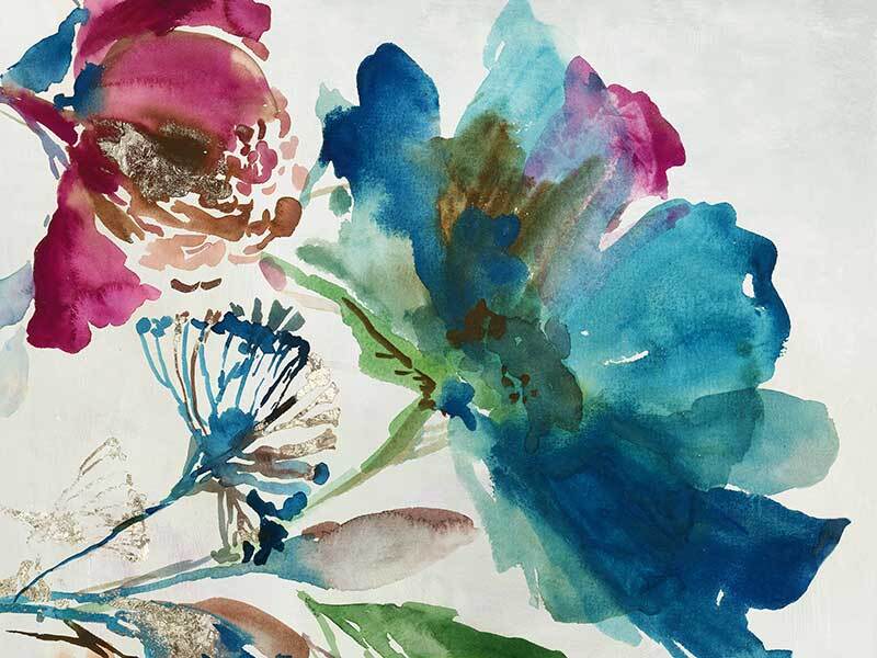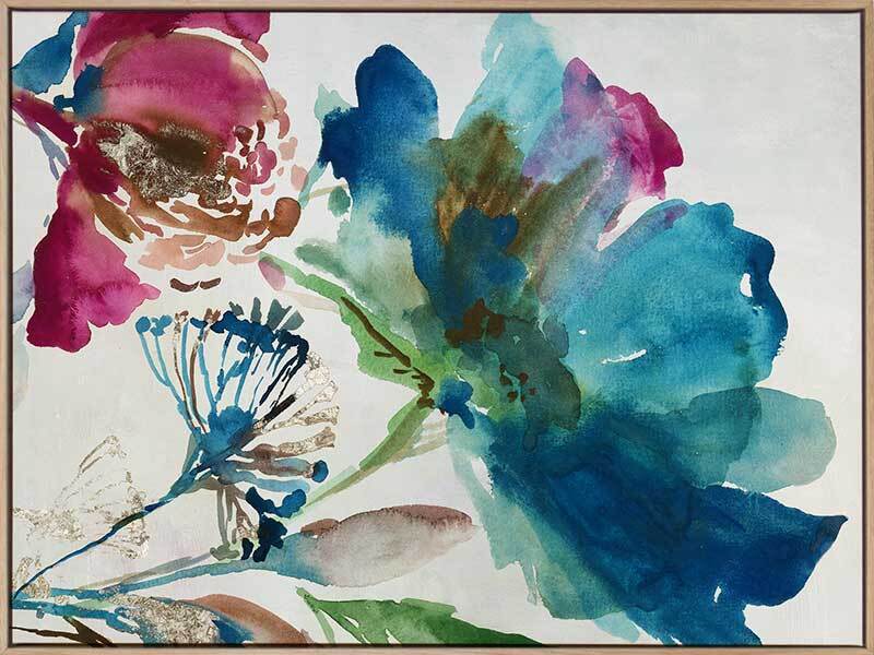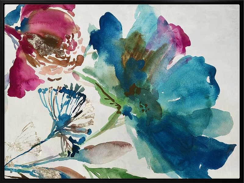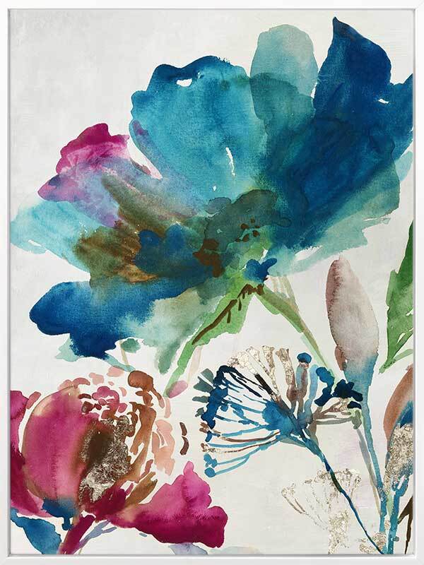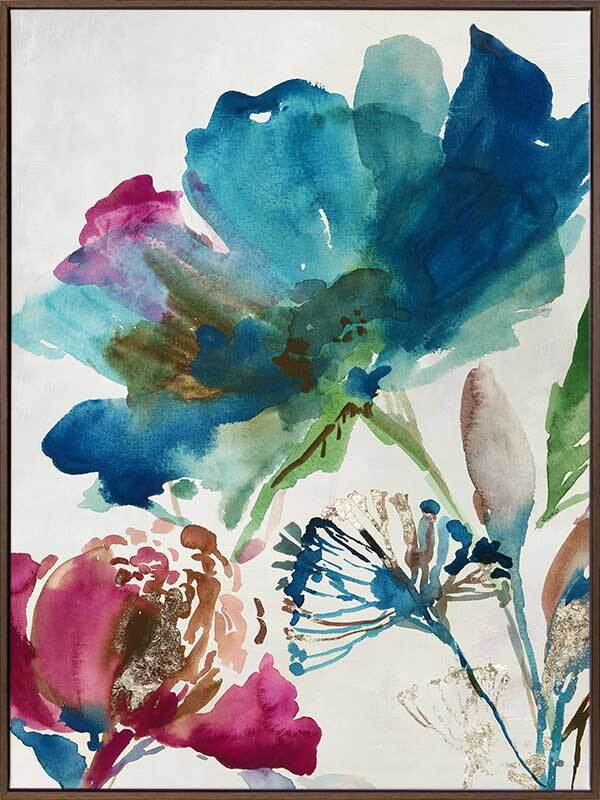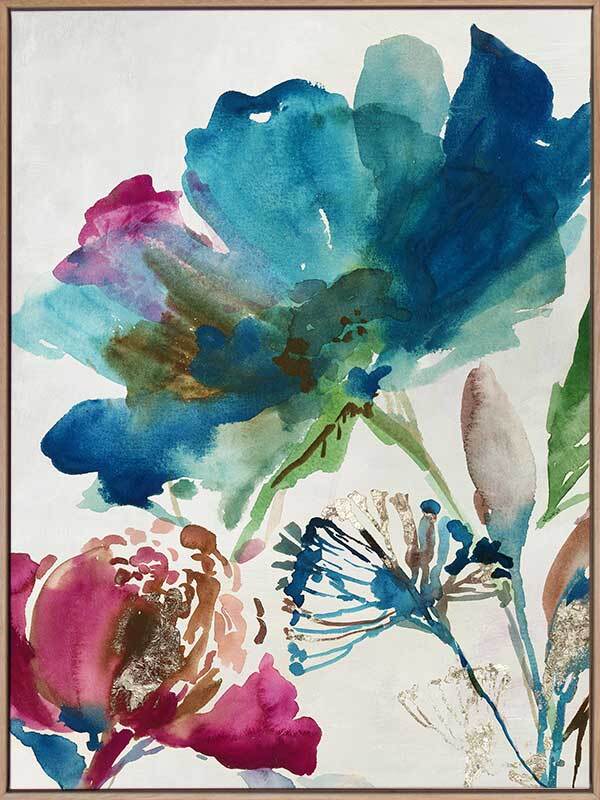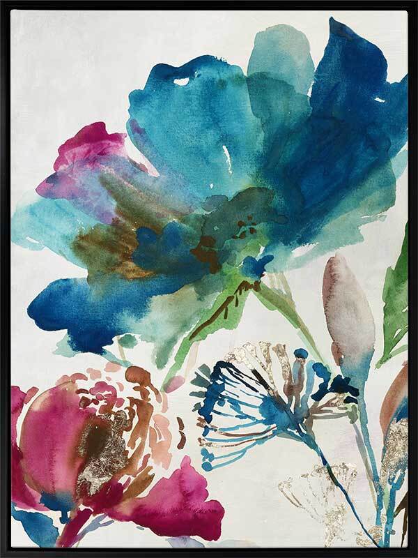Blossoming II Canvas Art Print - Watercolour is the perfect way to soften a space, with faded edges and diluted colours for that elegant, understated look. A colour palette of dark pink, blue, green and brown, paired with the feminine floral imagery, makes this piece ideal for subtly enhancing any space with pops of colour.