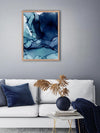 Blueberry I - An artwork created with alcohol inks in a deep, navy blue and teal colour palette. Pairs with Blueberry II.