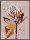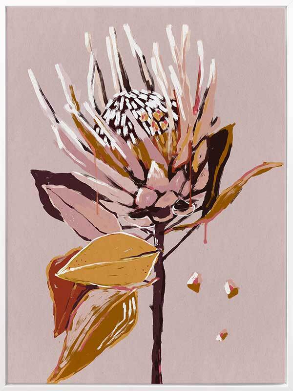 Blush Protea Canvas Art Print - Warm and feminine, this painterly style artwork features a beautifully textured protea - a true iconic of the world of Australiana. The colour palette is subtle yet striking, featuring soft, blush pink tones contrasted against warm mustard yellow and brown.