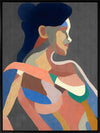Bold Canvas Art Print - This pop art style abstract portraiture features a mosaic array of colourful, curving geometric shapes forming the bust of a woman. The palette is beautiful and sophisticated, featuring muted grey and beige tones, accented with bright pops of peach, terracotta, navy and blue.