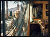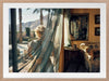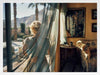 Bon Voyage Framed Art Print - This gorgeous photographic artwork captures a woman gazing out the window in her Palm Springs home, exuding a vintage air with rich colours of gold, turquoise, and muted earth tones. Bringing mid-century modern and retro vibes to any space, this photographic wall art evokes the calm, nostalgic feelings of a bygone era.