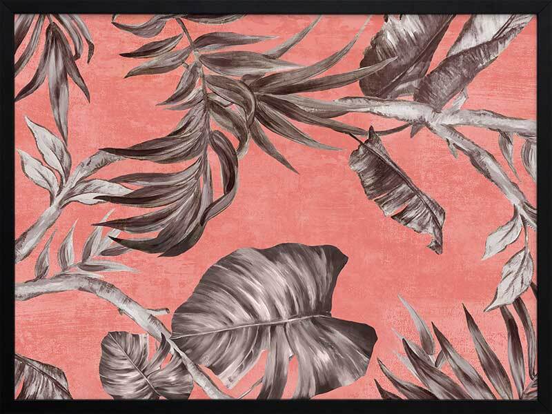 Book of Palms I Framed Art Print - With a context rooted in vacation vibes and beach sunsets, this study of palm leaves brings a whole new perspective to these tropical flora. With the greyscale palette against a coral toned backdrop, this piece has an abstract feel, making it the perfect addition to liven any space to enjoy it with those you love.