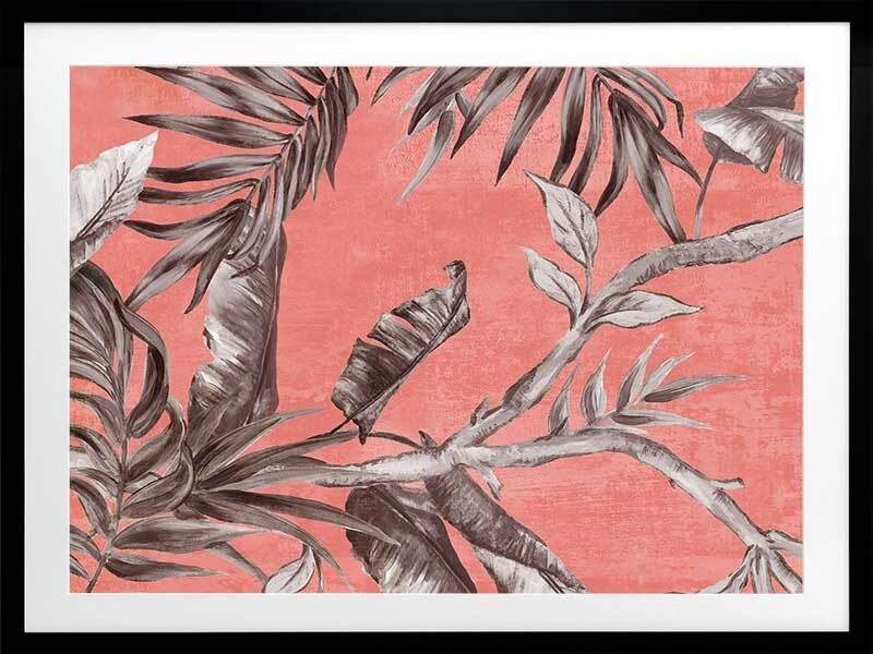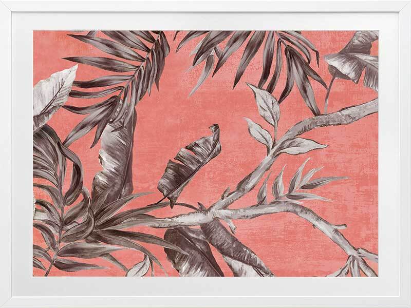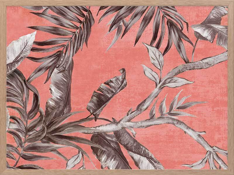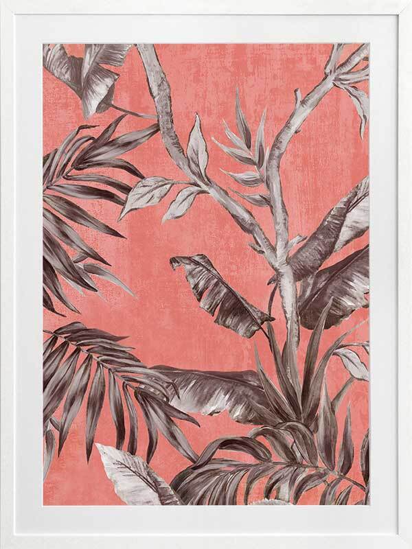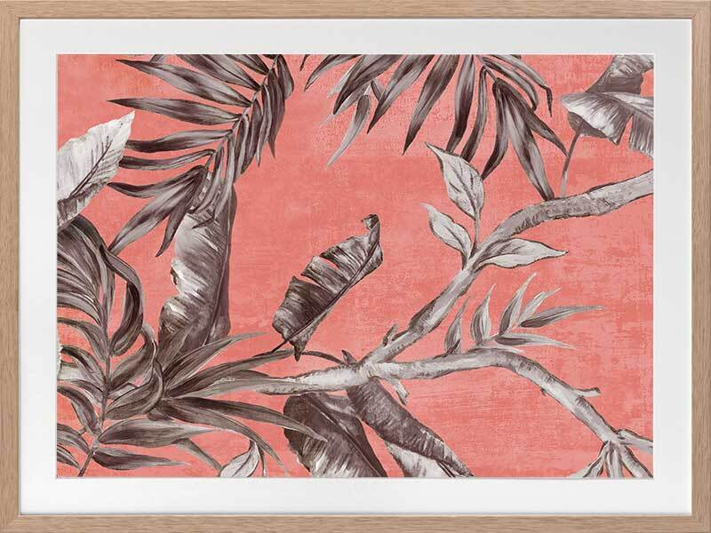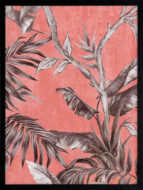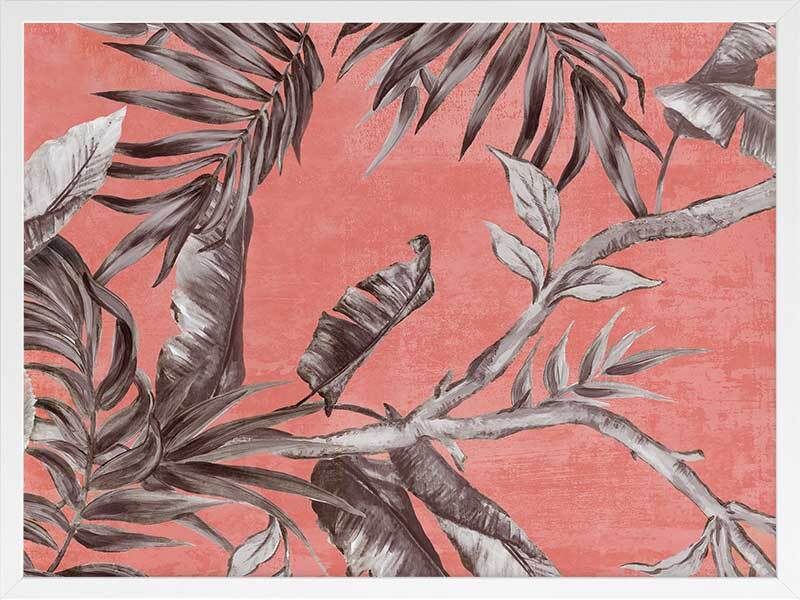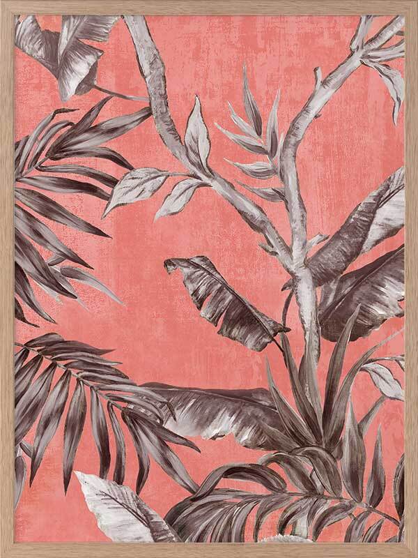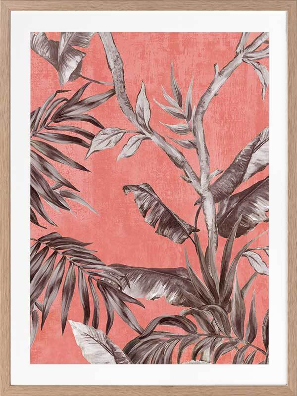Book of Palms II Framed Art Print - With a context rooted in vacation vibes and beach sunsets, this study of palm leaves brings a whole new perspective to these tropical flora. With the greyscale palette against a coral toned backdrop, this piece has an abstract feel, making it the perfect addition to liven any space to enjoy it with those you love.