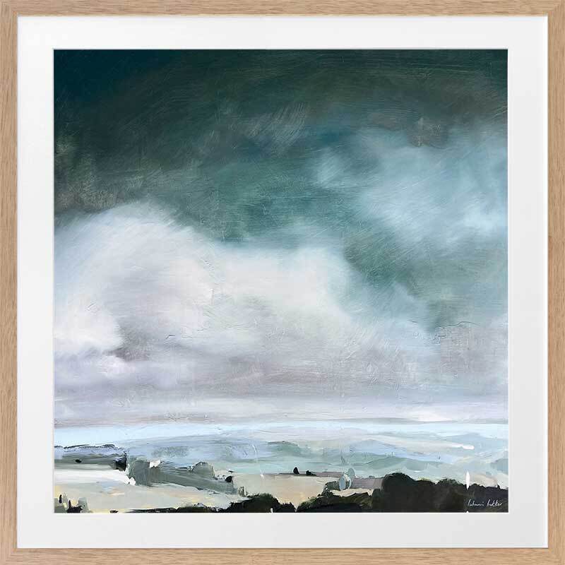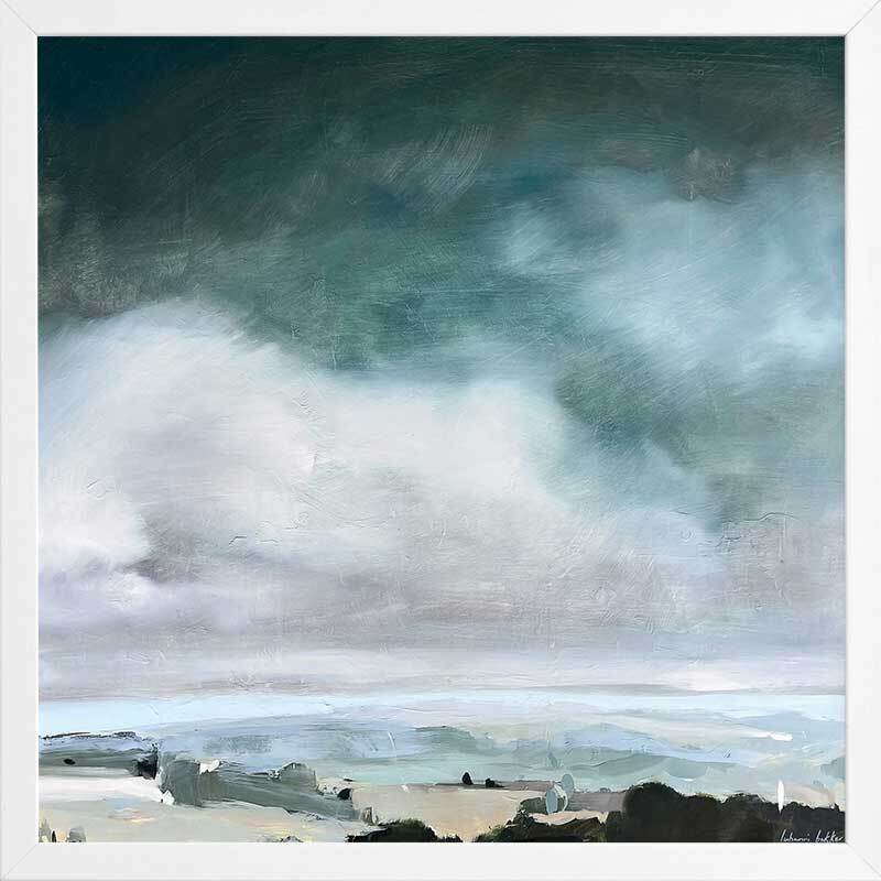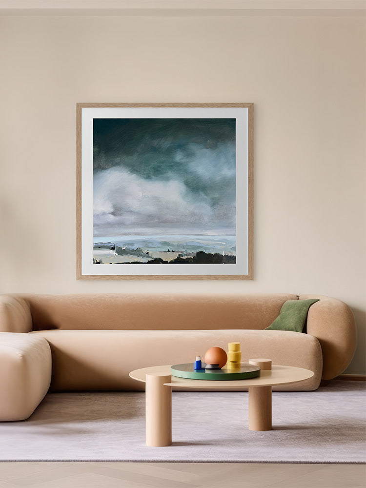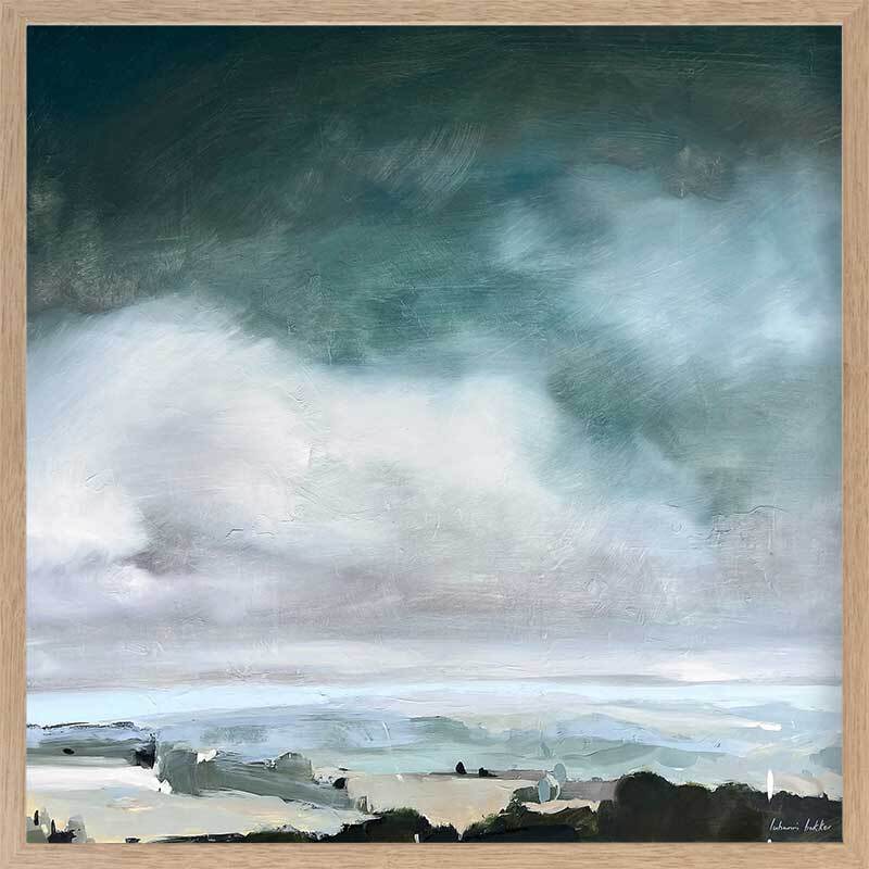 Breathe Framed Art Print - This modern art piece embodies the brooding beauty of coastal art, where the churning sea meets the tempestuous sky. Dominant hues of stormy greys, deep blues, and whites converge in a dramatic dance, capturing the raw power and emotion of nature's elements.