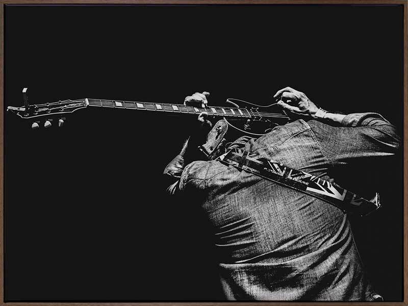 British Sound Canvas Art Print: A black and white photographic image of a musician playing the guitar behind his back. 2018 AUTUMN/WINTER COLLECTION: CONTINUUM