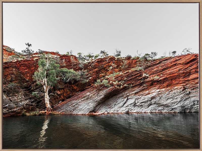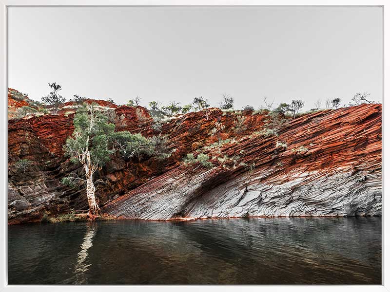 By the Billabong - A beautiful photographic image of a water hole surrounded by a red-earth rockface.