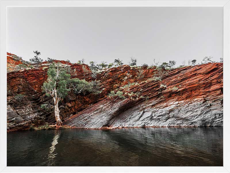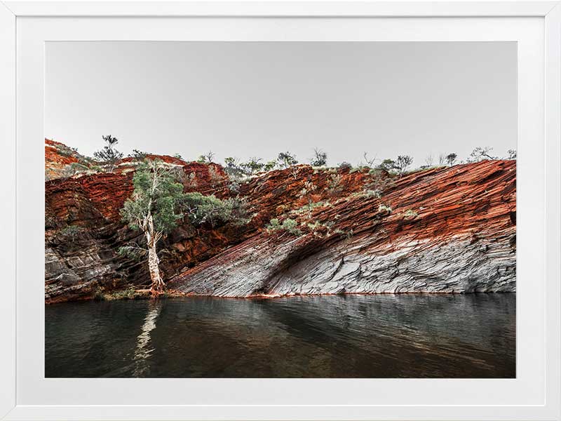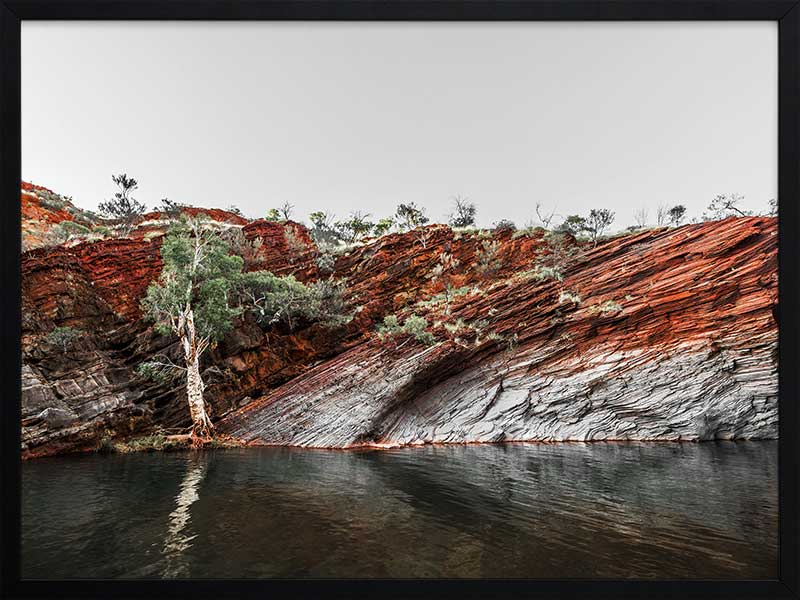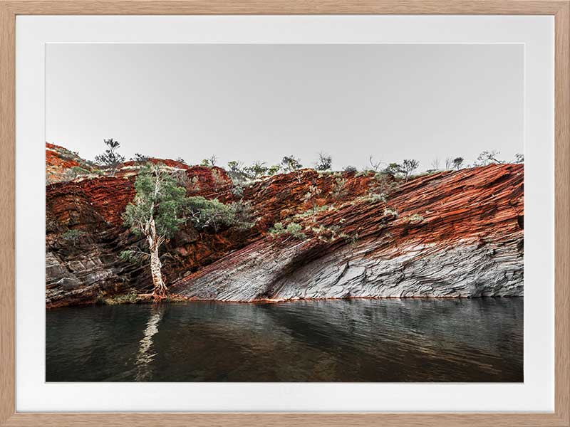By the Billabong - A beautiful photographic image of a water hole surrounded by a red-earth rockface.