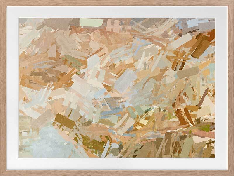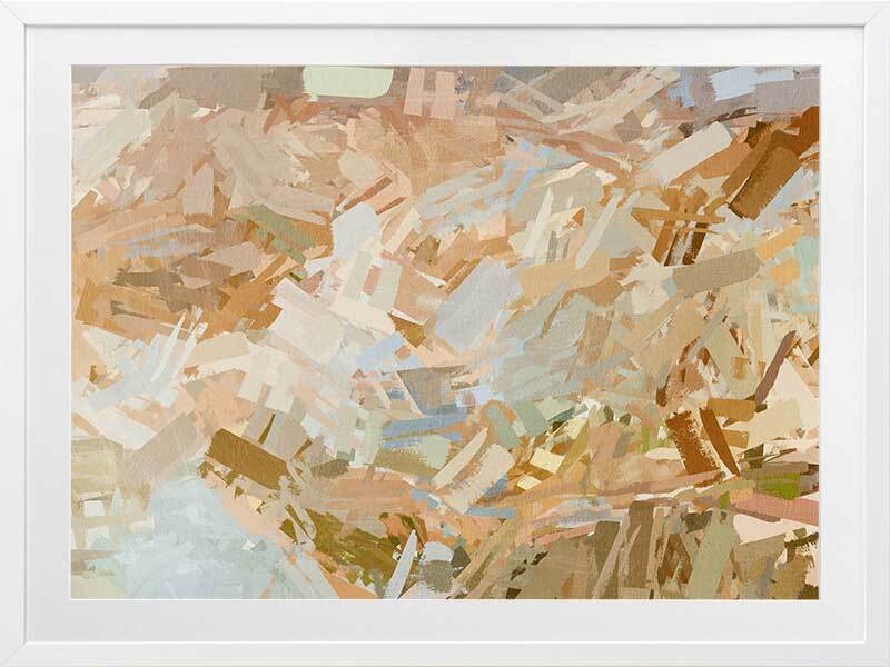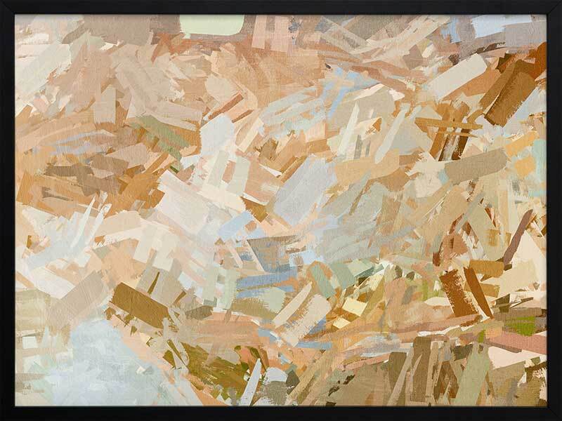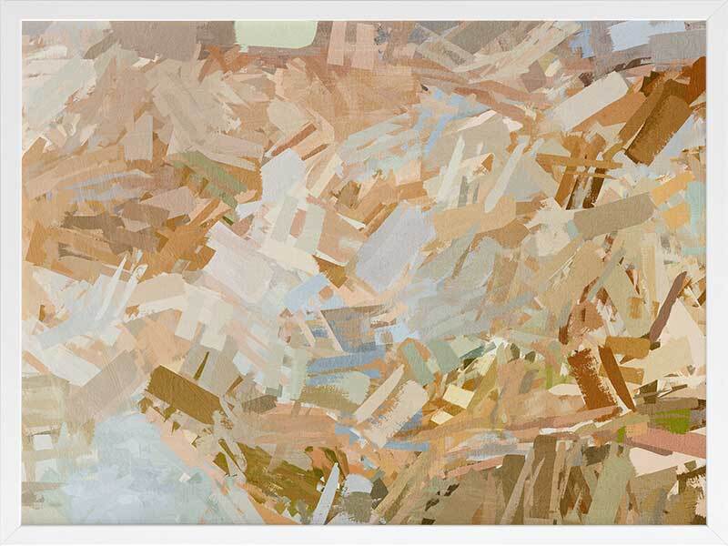 Calm Chaos Framed Art Print - Journey through the abstract beauty of nature with this captivating landscape artwork, perfect for enthusiasts of both abstract and natural landscapes. Let your imagination soar as you experience the vibrant energy of this abstract piece, reminiscent of a mesmerizing birds-eye-view of the beach. The intentional chaos of brushstrokes blends harmoniously, creating a sense of serenity that transcends the canvas and fills your space. The versatile palette of beige, warm brown, light blue, and olive green hues adds depth and tranquility, seamlessly complementing any interior style. Immerse yourself in the captivating allure of this artwork, allowing its serene presence to transport you to the peaceful shores of your imagination.