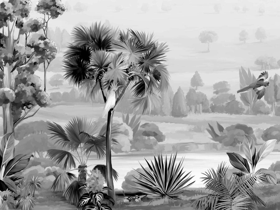 Campaspe Dreams Wallpaper - This spectacular wall mural is inspired by the Kyneton Botanical Gardens in Victoria, and created for Shaynna Blaze's Victorian-style home in Kyneton. With nods to British Colonial design, this wallpaper also incorporates the alluring beauty of native Australian birds and scenery unique to the land. A painterly quality makes it seem like you're stepping right into the scene, with luscious greens, muted yellows and oranges, and vivid colours of the birds.