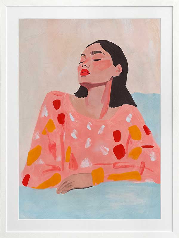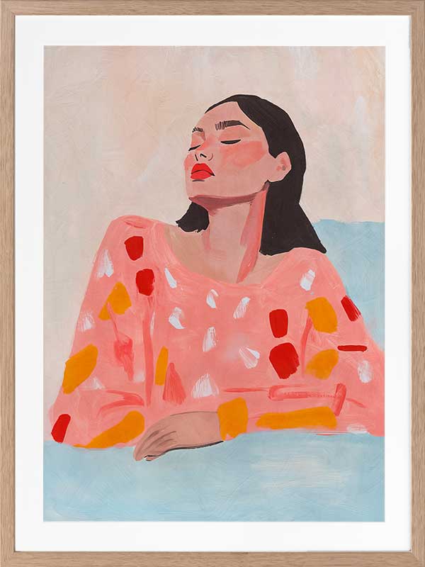 Carmela Framed Art Print - Bold, confident, and effortlessly radiant, this feminine portrait artwork exudes strength. Vivid strokes of coral pink, red, orange, blue, and beige dance across the composition, embodying warmth and vitality. The woman’s poised expression and striking presence make this artwork a celebration of power and elegance. Whether styled in a modern or eclectic space, its dynamic energy adds an undeniable statement of confidence and charisma.