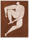 Caroline Cut-Out I Canvas Art Print - Drawing inspiration from the iconic cut-out style artwork from modern art master Matisse, this artwork features a simplistic, caricature-like portrait of a figure with exaggerated limbs. The colour palette is warm and earthy, featuring a neutral beige coloured figure against a rich brown textured background. This artwork has been created to match with Caroline Cut-Out II, III and IV.