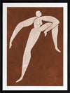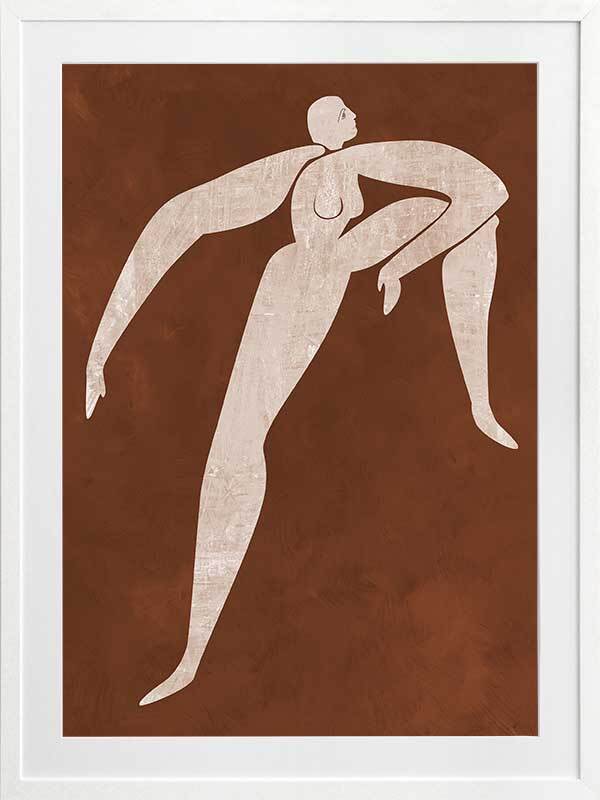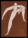 Caroline Cut-Out II Framed Art Print - Drawing inspiration from the iconic cut-out style artwork from modern art master Matisse, this artwork features a simplistic, caricature-like portrait of a figure with exaggerated limbs. The colour palette is warm and earthy, featuring a neutral beige coloured figure against a rich brown textured background. This artwork has been created to match with Caroline Cut-Out I, III and IV.