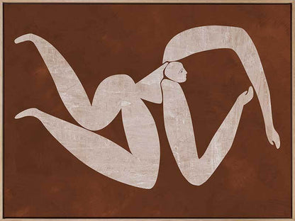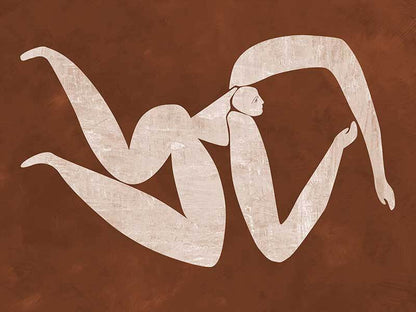 Caroline Cut-Out IV Canvas Art Print - Drawing inspiration from the iconic cut-out style artwork from modern art master Matisse, this artwork features a simplistic, caricature-like portrait of a figure with exaggerated limbs. The colour palette is warm and earthy, featuring a neutral beige coloured figure against a rich brown textured background. This artwork has been created to match with Caroline Cut-Out I, II and III.