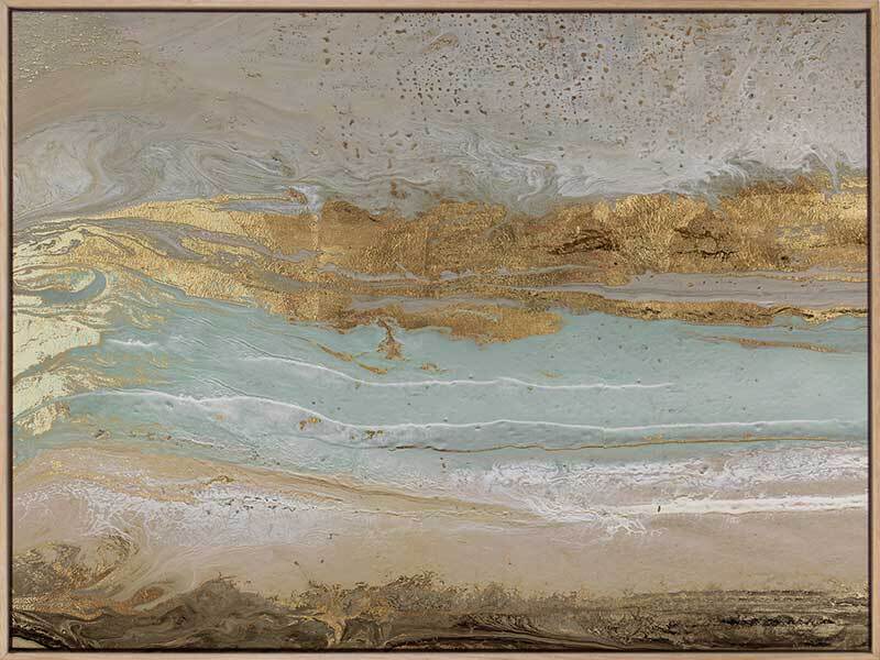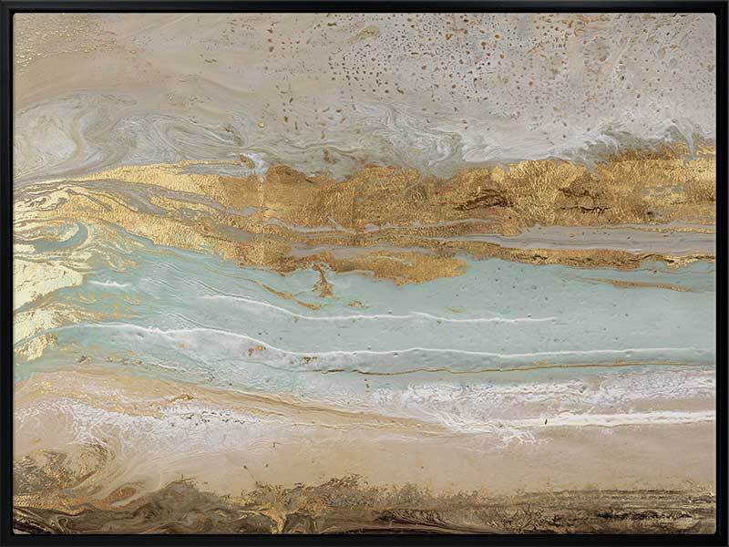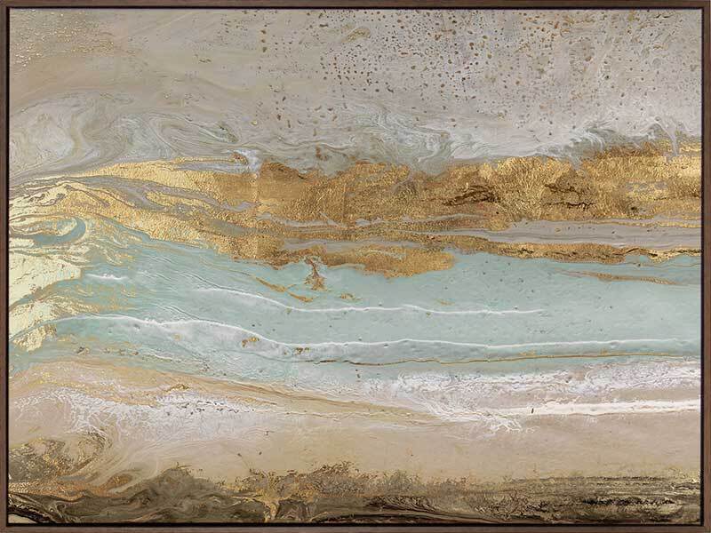 Carribbean Canvas Art Print - Like gazing from far above at the glistening, golden beaches of the Caribbean, this impressive abstract piece brightens any space with its lustrous jewel tones and soft, turquoise colour, balanced out by a soft sandy beige shade.