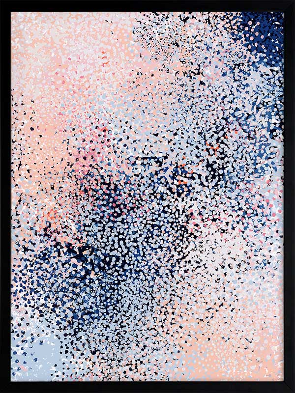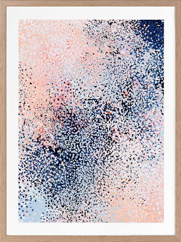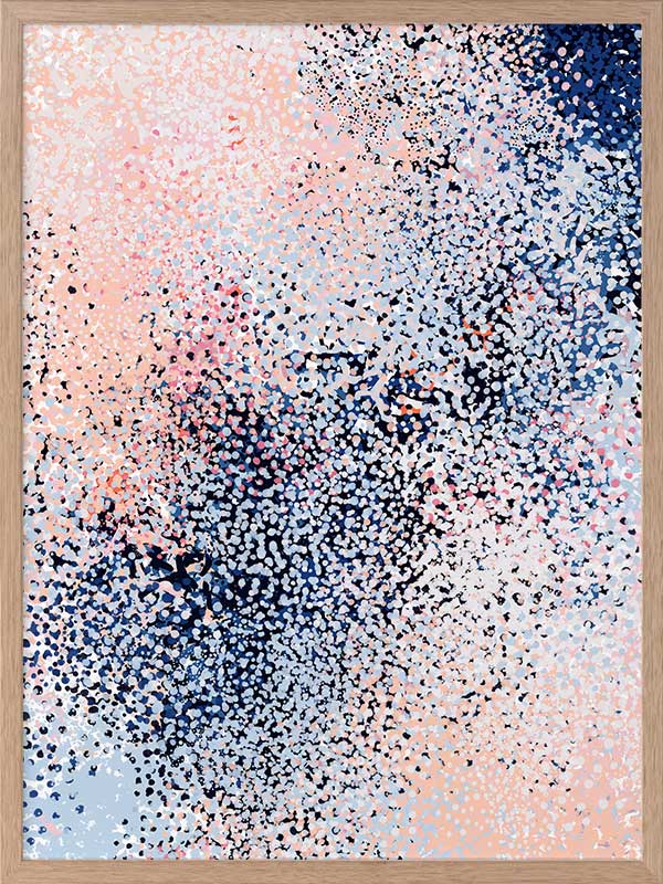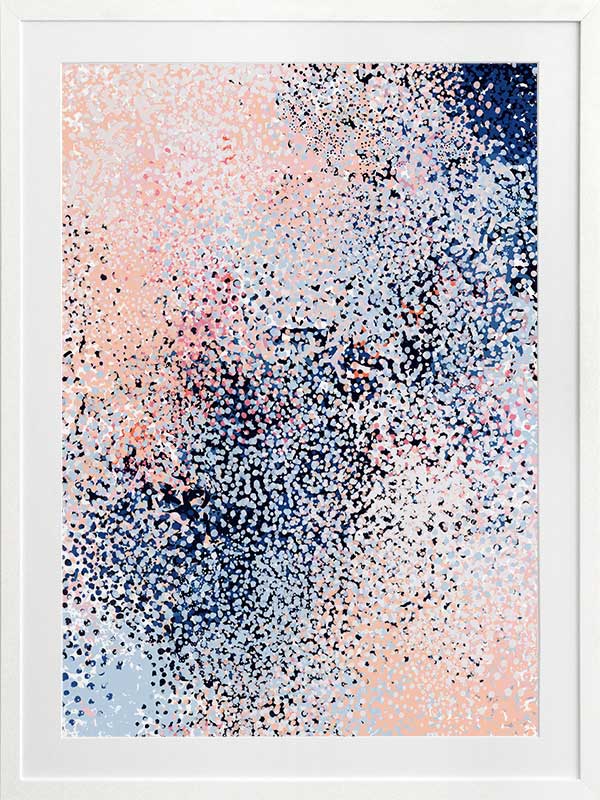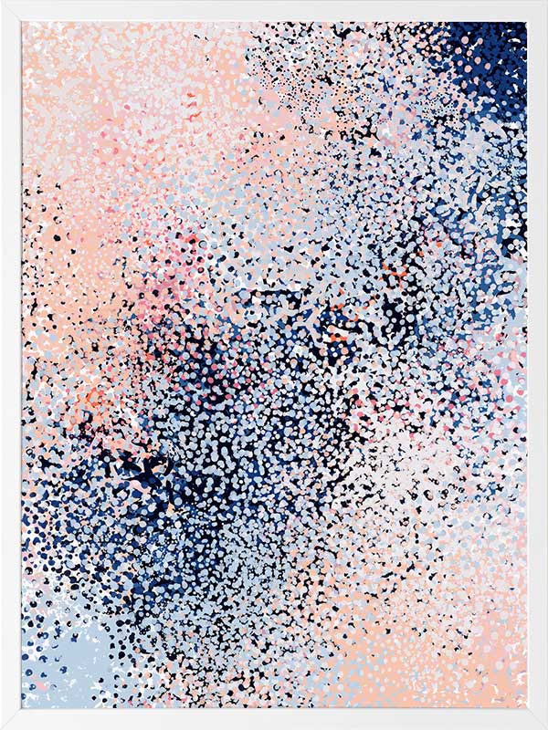 Cirro Sky - An explosion of pink, teal and navy dots on a white background.