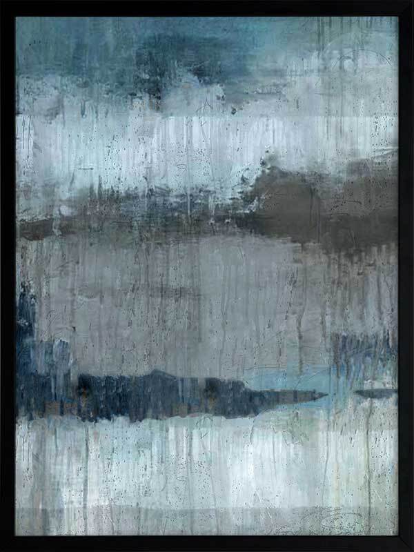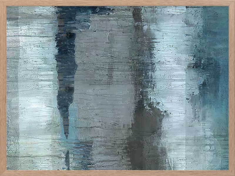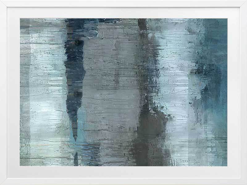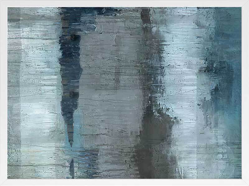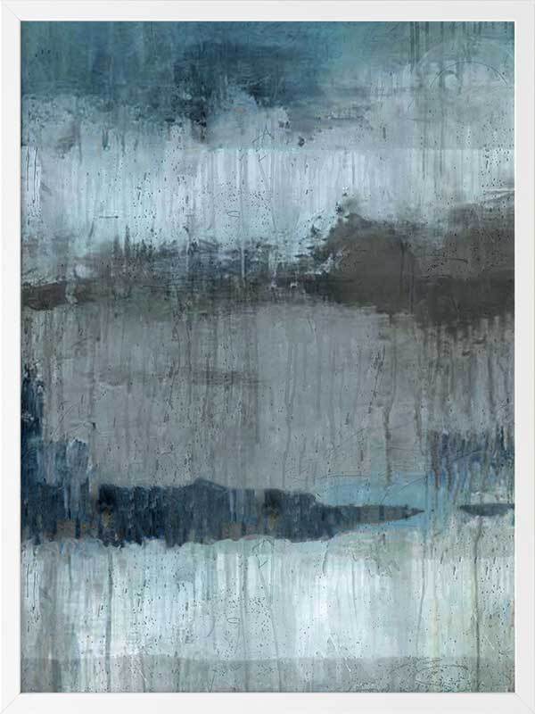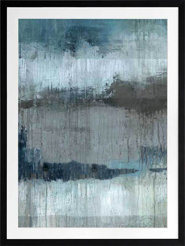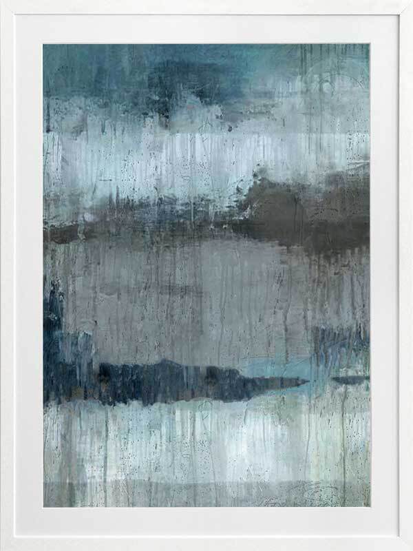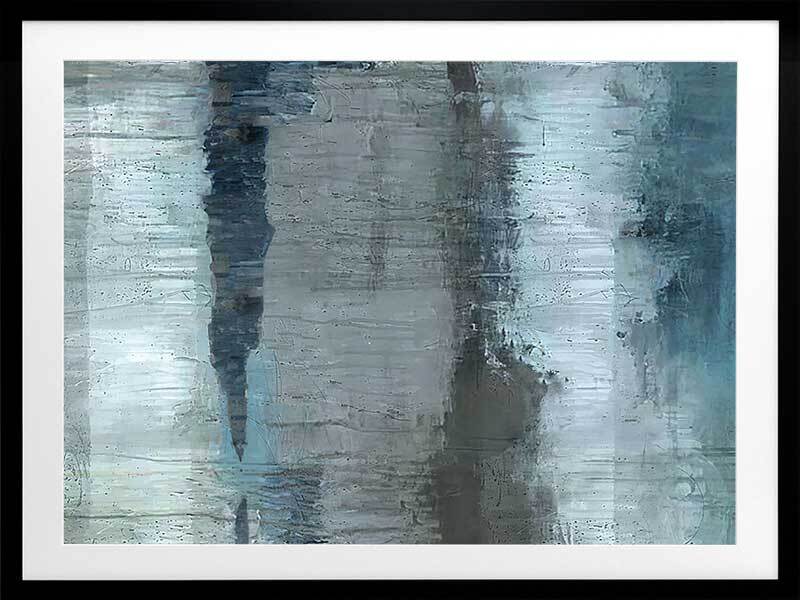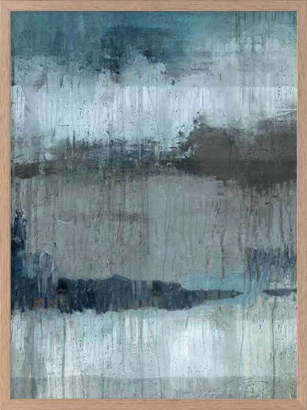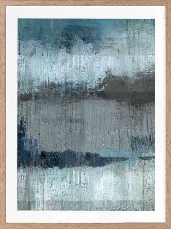 City Fog I Framed Art Print - For minimalist lovers, this abstract piece uses a neutral palette of soft beige, brown and white, with cool blue tones throughout to bring a little more colour to your space. With paint drips, brush strokes, and random linework, this makes an assertive statement on any wall.
