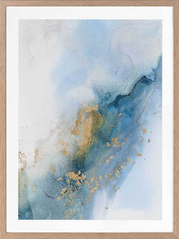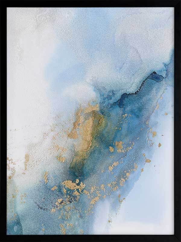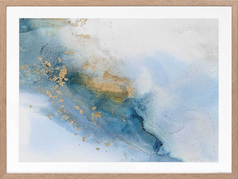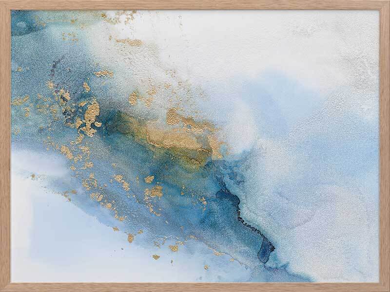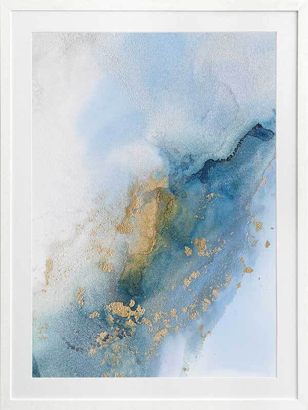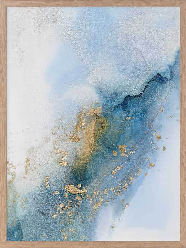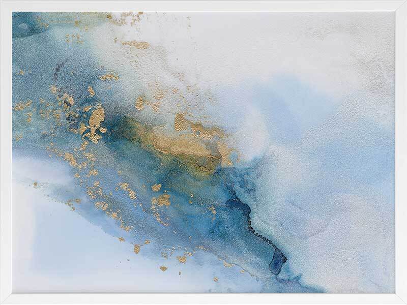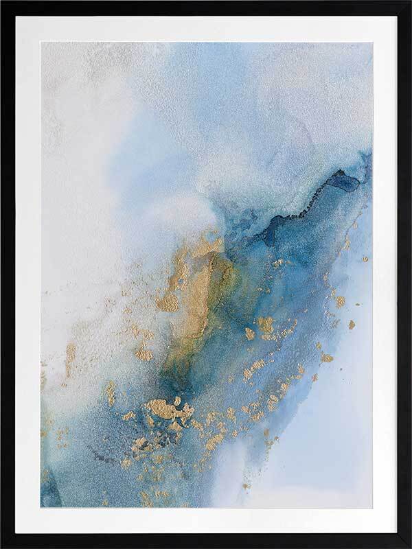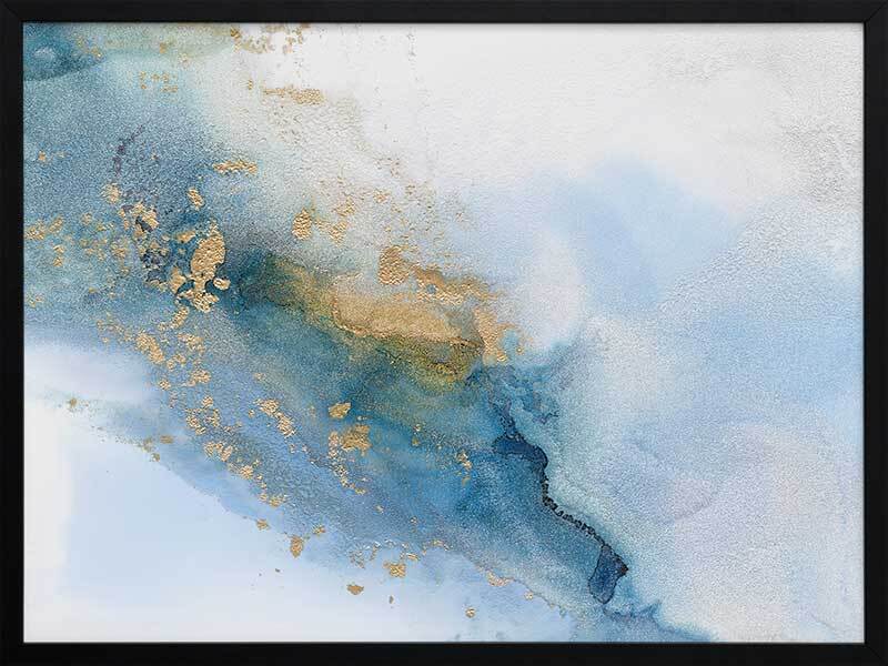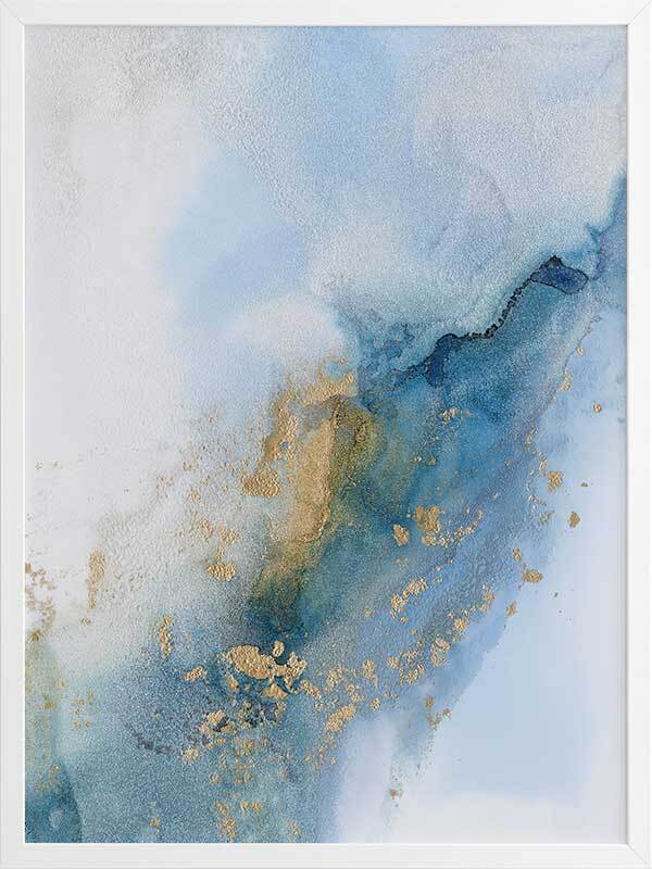 Cloudland I Framed Art Print - A soft, ethereal abstract piece which sees a beautiful blend of soft, periwinkle blue and indigo and a light dusting of silvery grey. The dreamy artwork is topped off with gold accents. Pairs with Cloudland II.