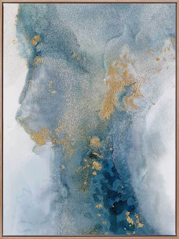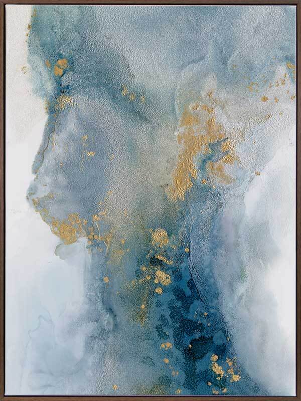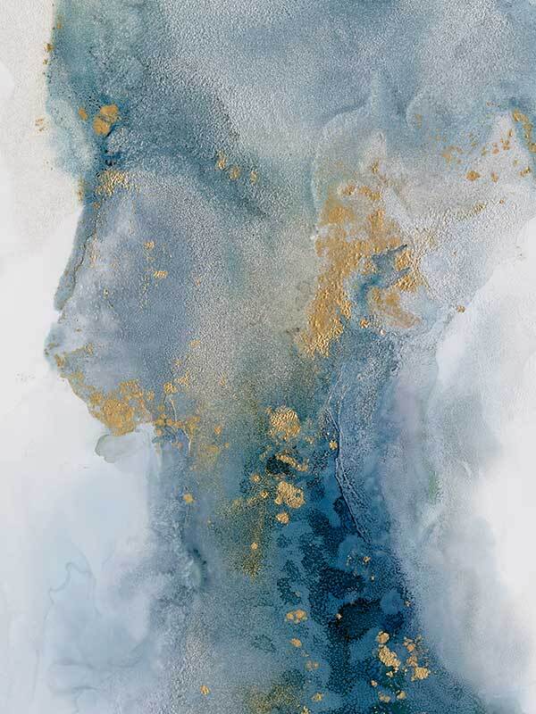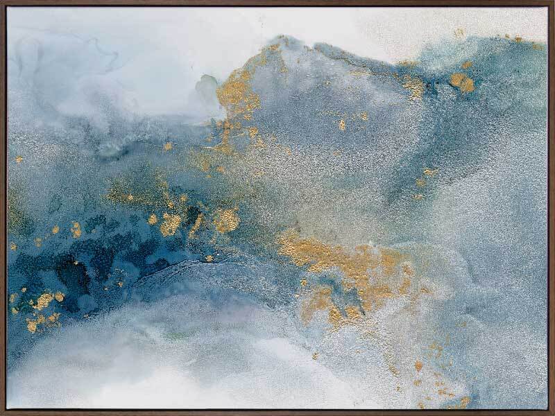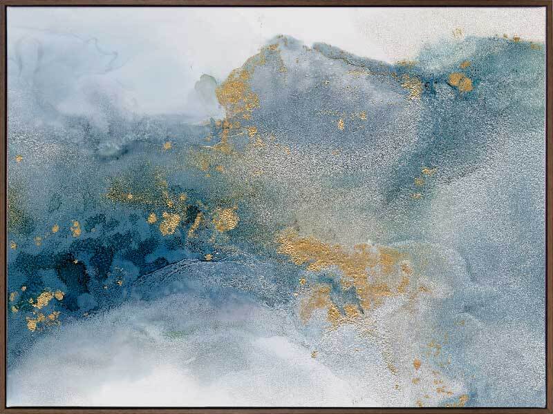 Cloudland II Canvas Art Print - A soft, ethereal abstract piece which sees a beautiful blend of soft, periwinkle blue and indigo and a light dusting of silvery grey. The dreamy artwork is topped off with gold accents. Pairs with Cloudland I.