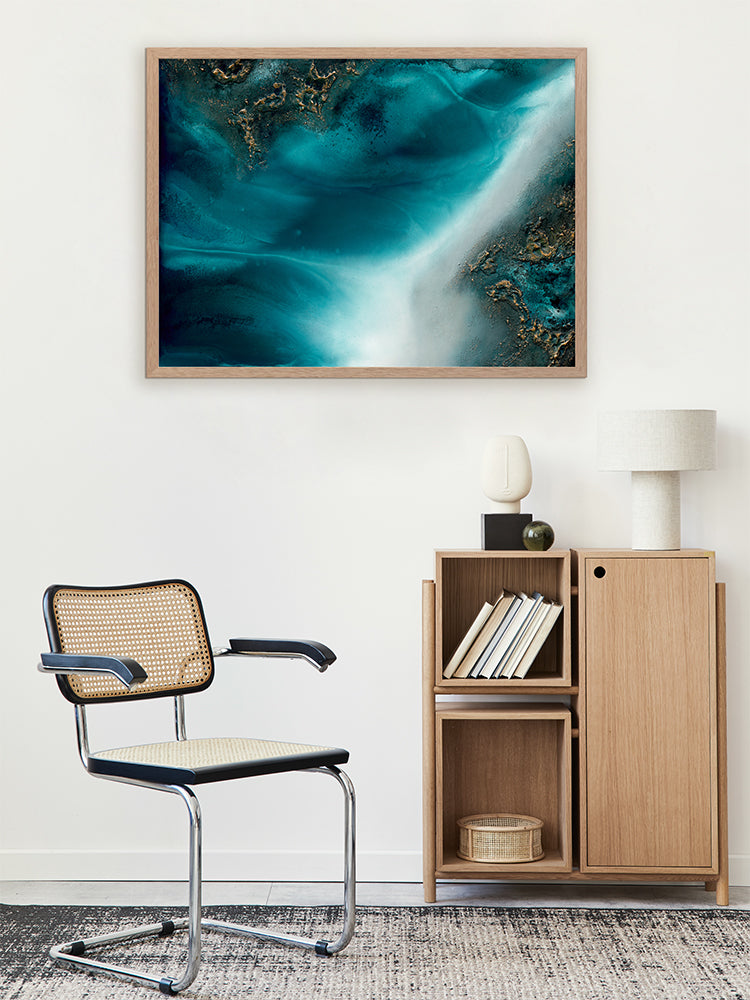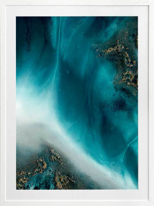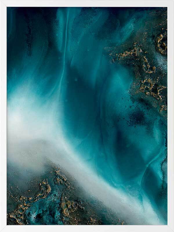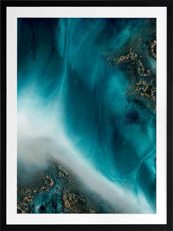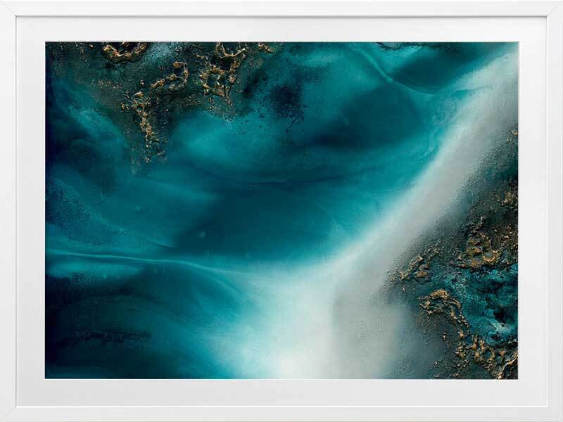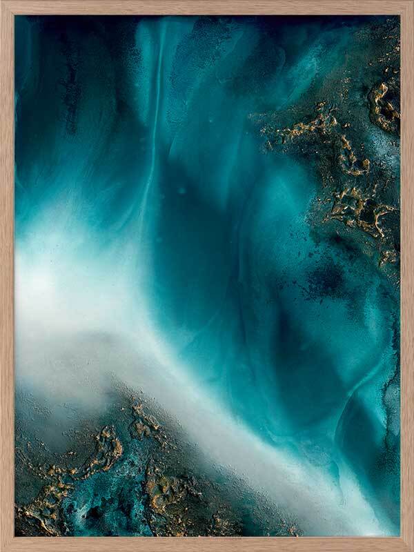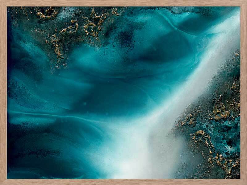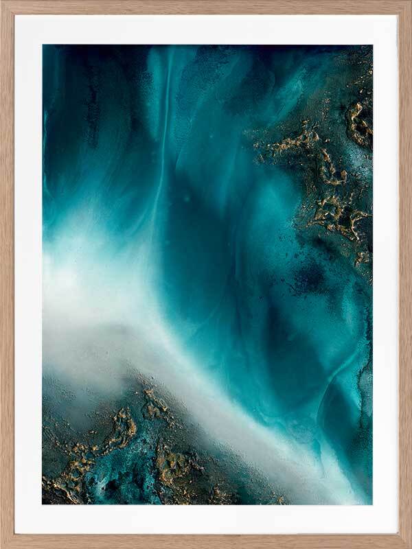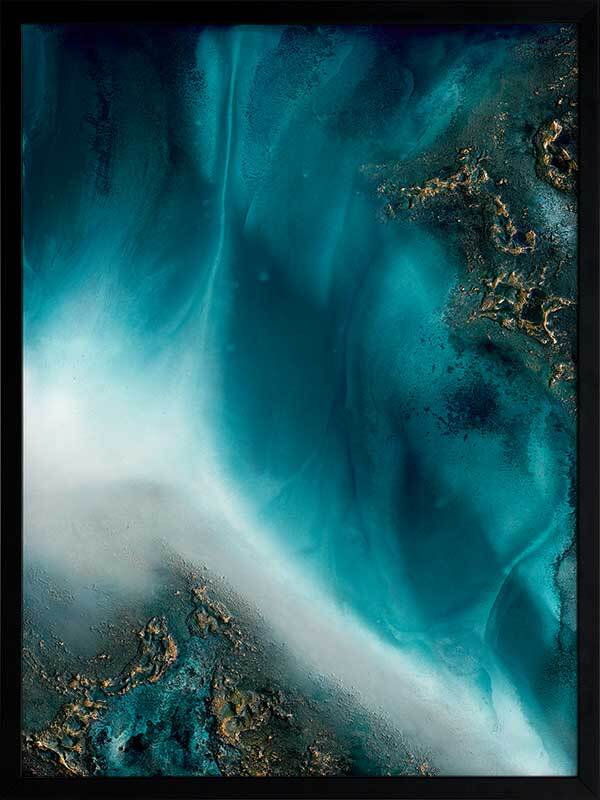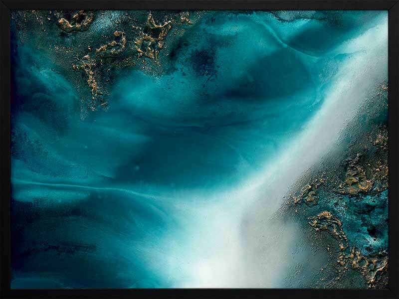 Coastal Flow Framed Art Print - A beautiful marbling of teal and aqua with gold accents - reminiscent of an aerial ocean. Petra Meikle de Vlas is an Australian Mixed Media Artist whose work is a combination of fine art, abstract and impressionism, and uses many mediums. Petra lives and works at her rainforest property in Cairns, located in Far North Queensland, and enjoys using the nearby Great Barrier Reef as a major source of inspiration and reference for her work. She's an artist who lives and breathes her craft, thrives on breaking the rules, taking risks, and is constantly perfecting techniques and exploring new ideas. Every new piece is a collaboration of many experiments - techniques learned and effects stumbled upon through many years of experience, as she harnesses and manipulates different mediums to create her art.