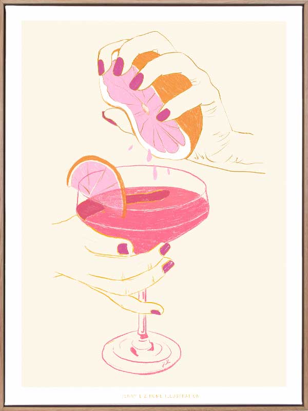 Cocktail II Canvas Art Print - Dripping in vintage charm, this retro poster art print by Jenny Liz Rome captures the essence of a sun-drenched afternoon, where citrus slices and clinking glasses set the mood. With a hand-drawn aesthetic and a striking palette of pink and orange, this artwork makes a statement in any space, from a stylish bar cart setup to a playful gallery wall. Perfect for lovers of boho style wall art and cool artwork prints, this piece blends seamlessly into a collection of retro prints Australia adores. Whether you're curating a mid-century-inspired home or adding a touch of nostalgia to your decor, this lively illustration delivers effortless charm and timeless appeal.