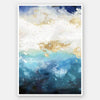 Cold Water Unframed Art Print - Immerse your space into the cool, calm embrace of ocean waves and salty sea breeze with this gorgeous abstract piece. Featuring visible brush marks, this piece revives any wall with its rich blue palette, complemented by creamy white and glints of glimmering gold.