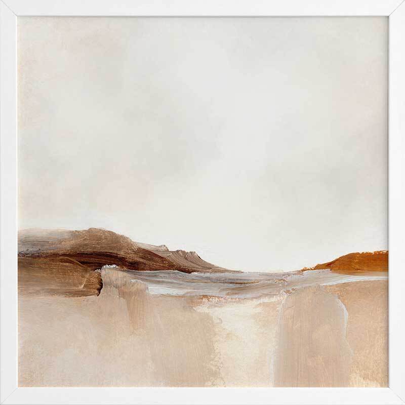 Colorado Framed Art Print - Warm and inviting is what you'll instantly feel with this art piece. Complementary neutral earth tones of soft orange and brown make up a warm abstract landscape, creating a calm, relaxing mood.