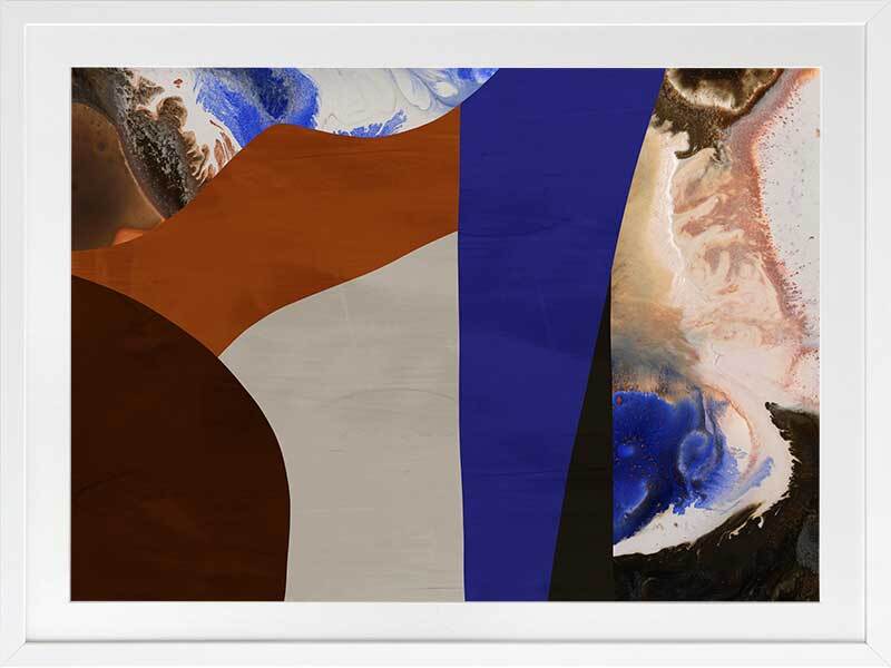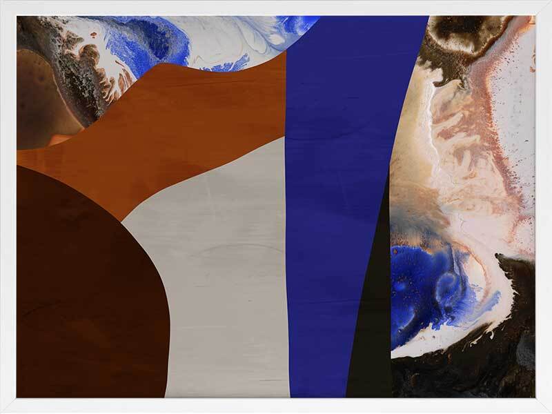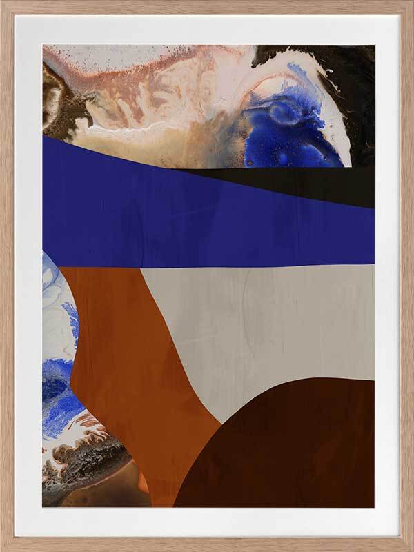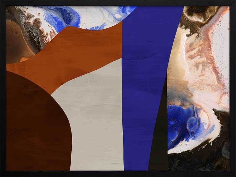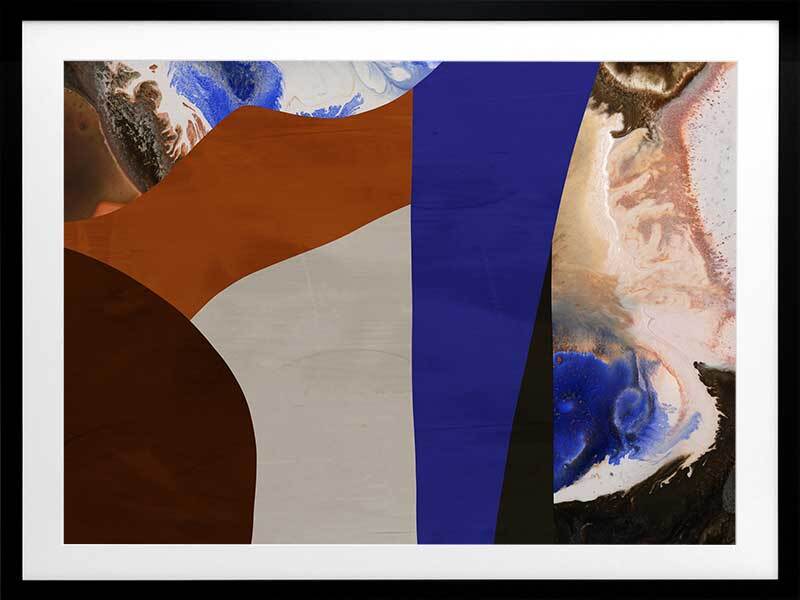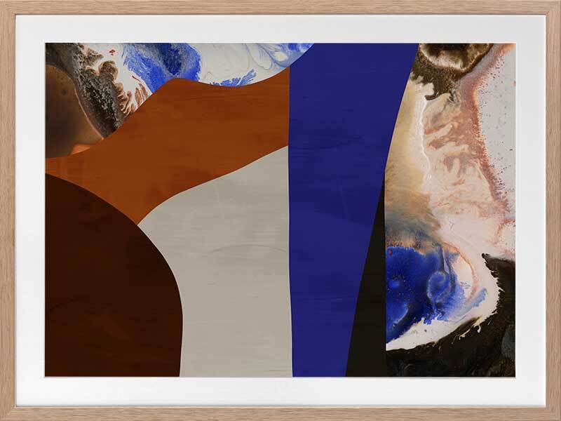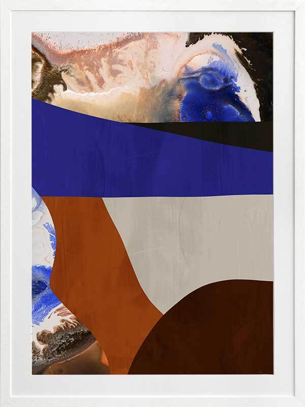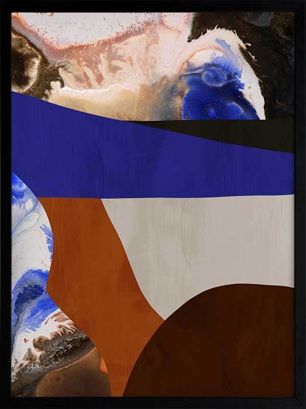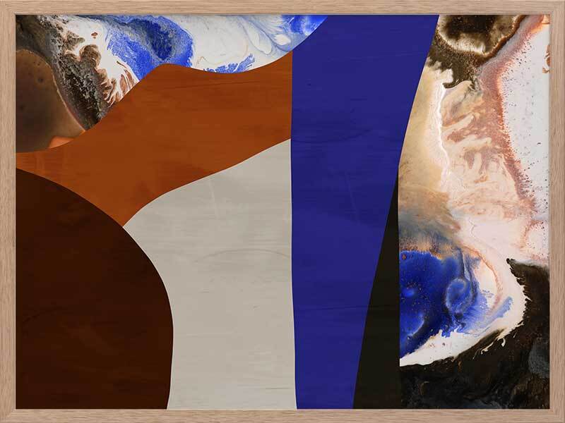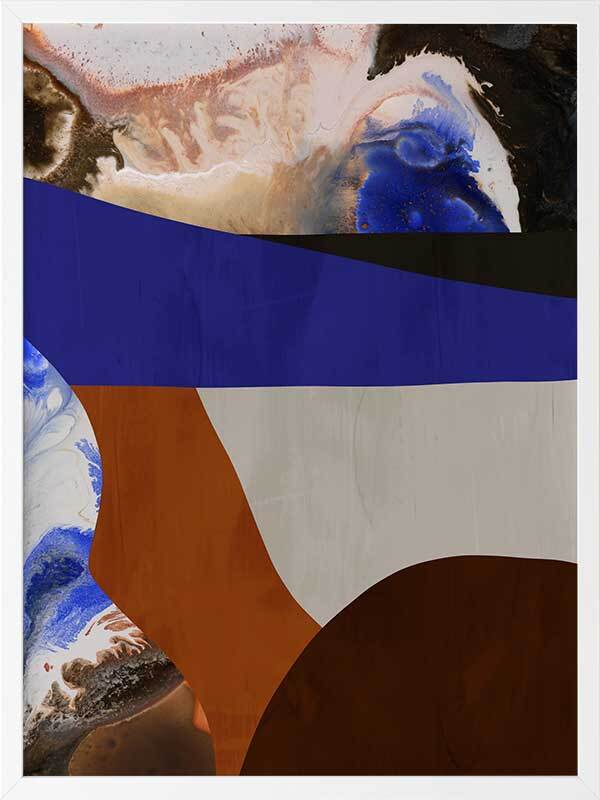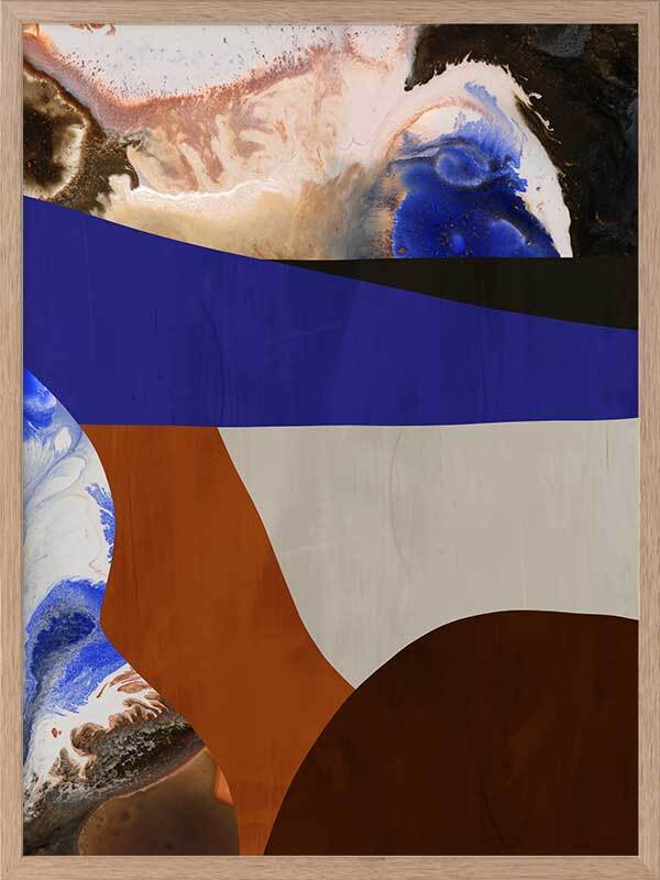 Colossus I Framed Print: A powerful abstract art print featuring contrasting blue, brown and beige shapes and patterns. Pairs with Colossus II. 2020 AUTUMN/WINTER COLLECTION: REVERIE