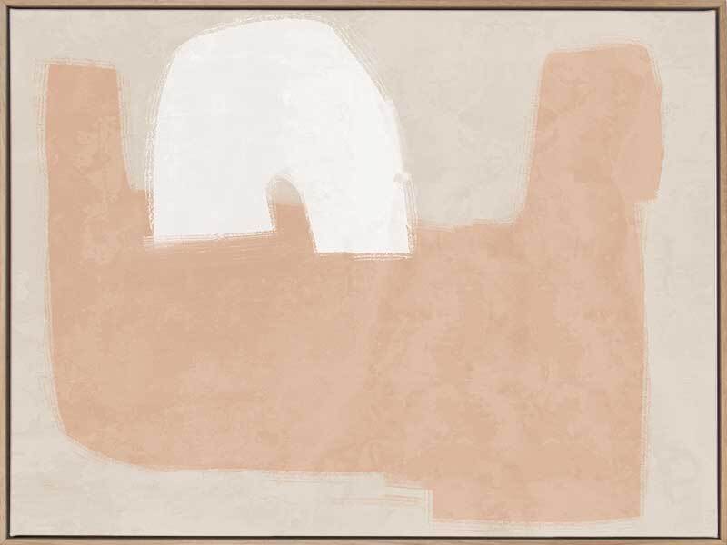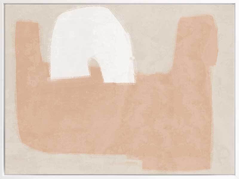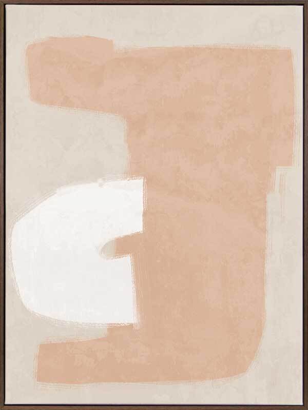 Composed Neutral Canvas Art Print - This minimalistic abstract artwork uses curves and other odd shapes and angles to create a cohesive feel, using visible brush strokes for an organic look. With a simple, clean palette of white, warm-toned blush, and light beige, this piece brings a calming air to your space.