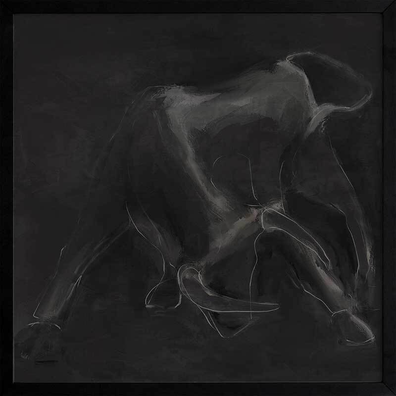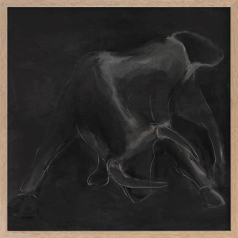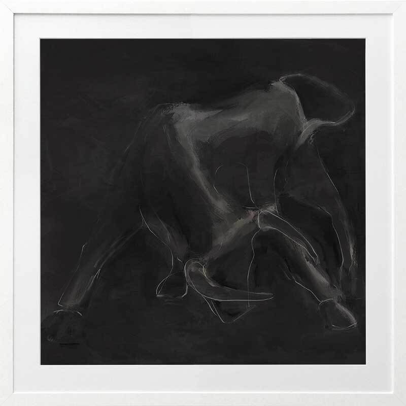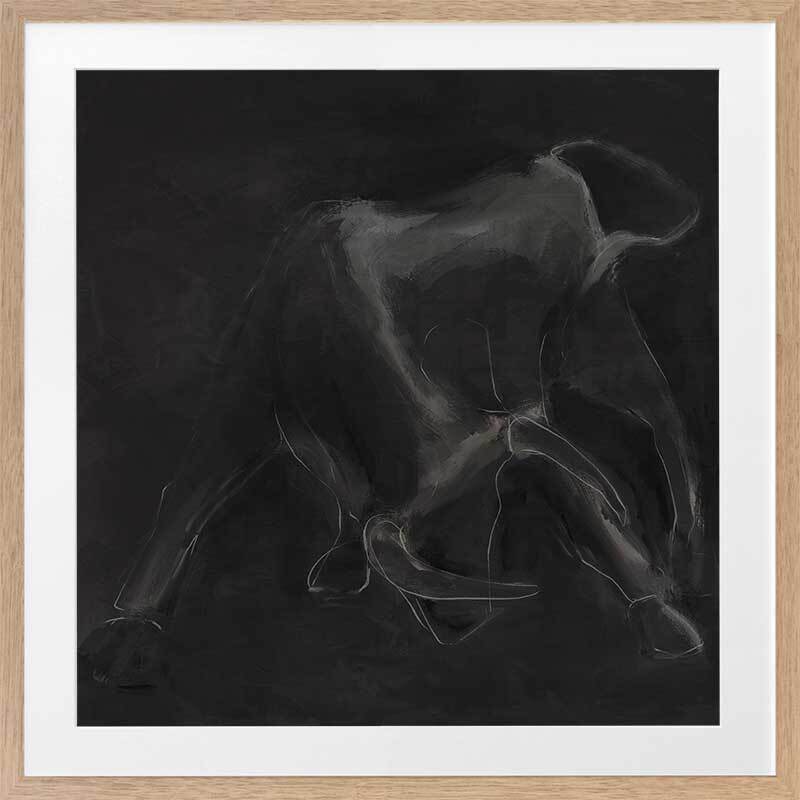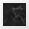 Contours Charge Framed Art Print - "Contours Charge" commands attention with its sense of masculine elegance. Inspired by the contours of a charging bull, this piece is an integral part of this masculine art collection by Darren Palmer, bringing to life the raw power of the bull, yet appreciating its softness and beauty. Using light grey outlines against a dark charcoal background, each bold line and abstract smudge plays on minimalist simplicity, making a striking impact, where you're invited to engage with the essence of strength and motion suspended in time.