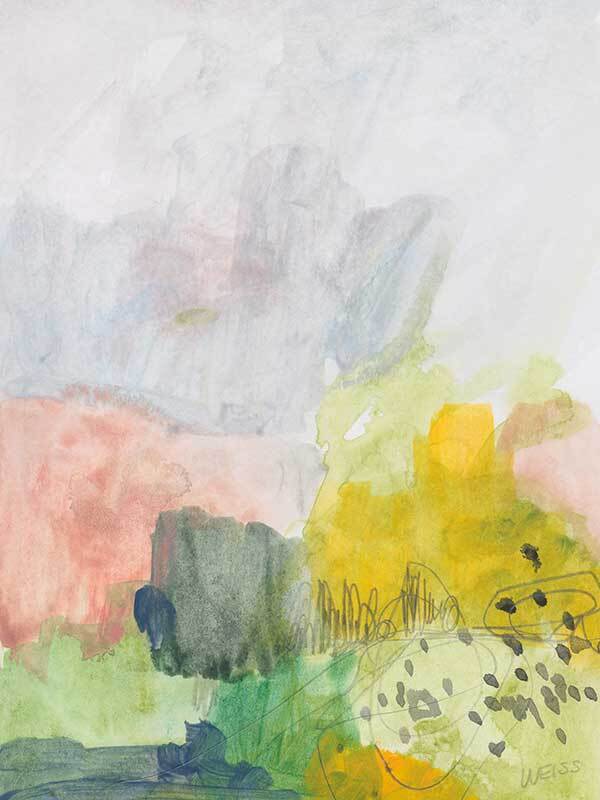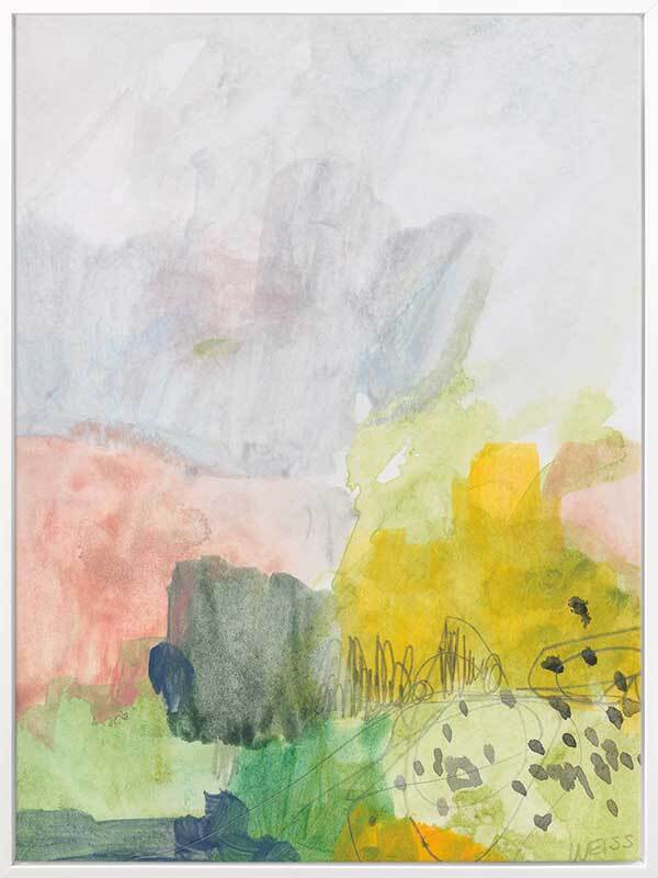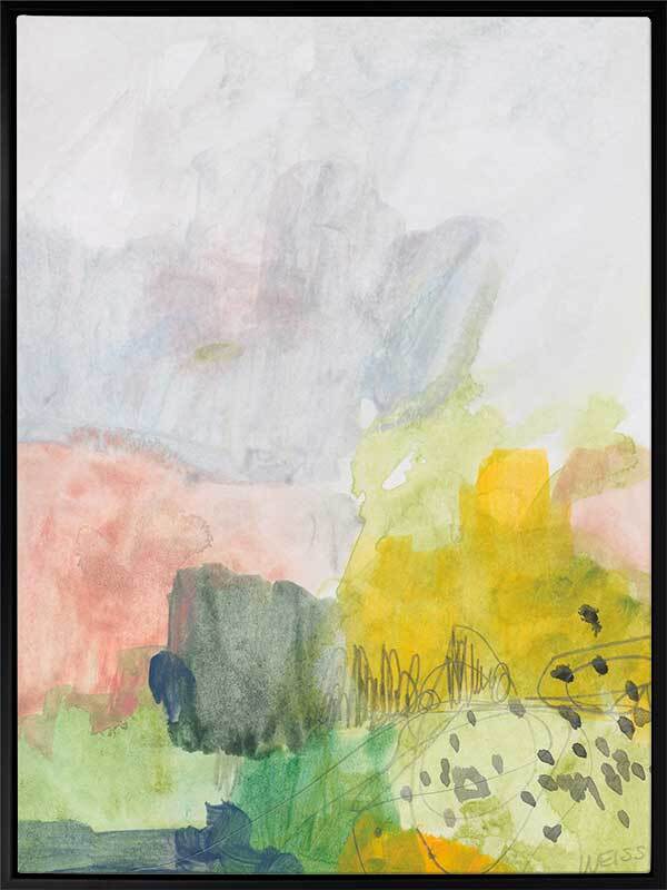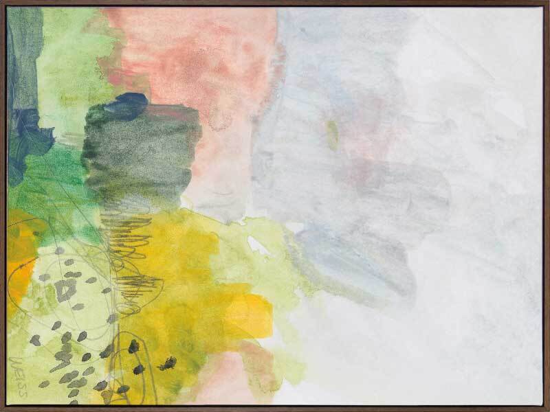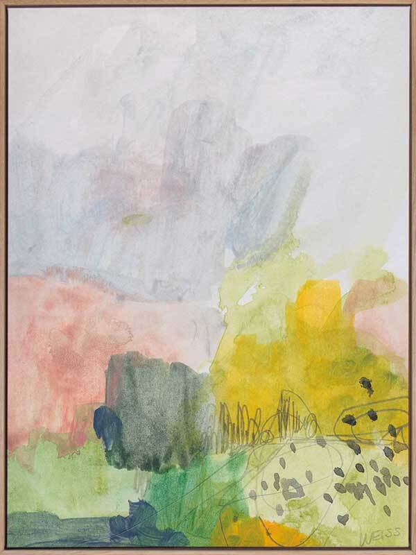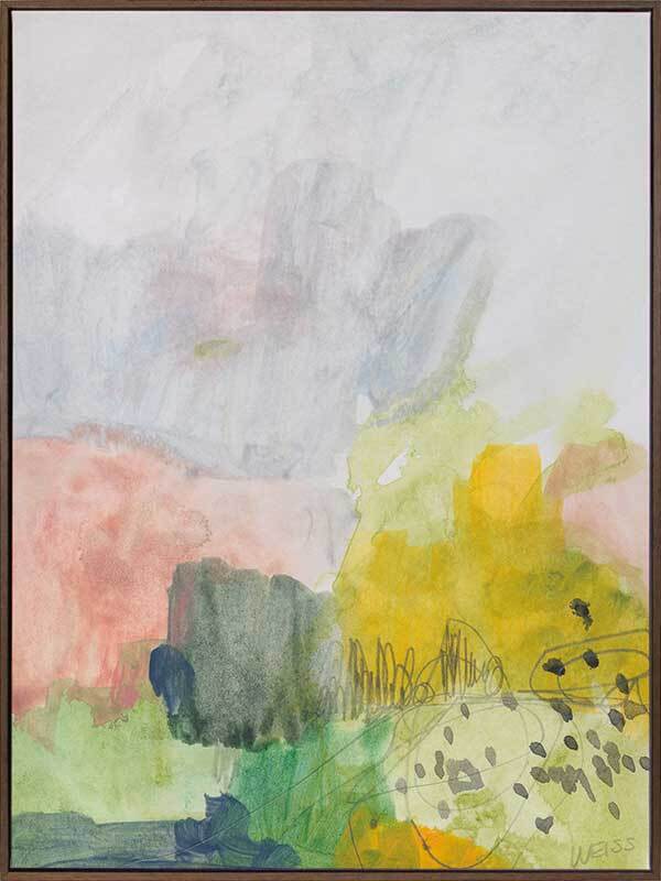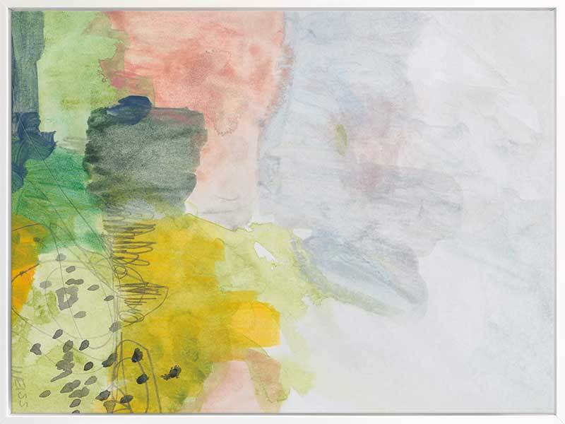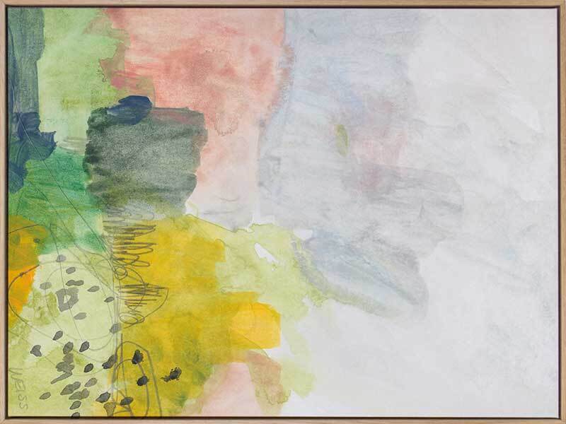 Cotton Candy I Canvas Art Print - A subtle colour palette with abstract shapes, brush strokes, spots, and lines, this piece brings a soft energy to your space. Colour palette includes pastel tones of yellow, pink, green, and blue.