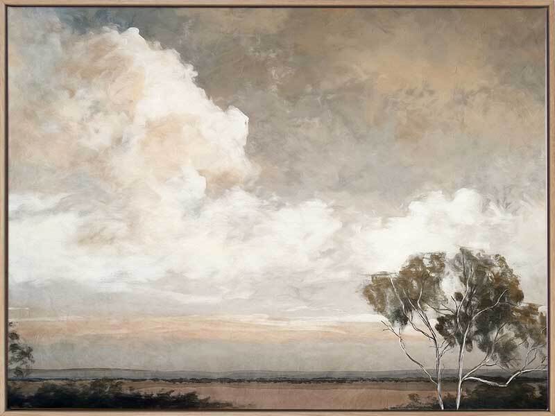 Countryside Canvas Art Print - Whisk yourself away to the countryside with this gorgeous artwork by Darren Palmer. This art print beautifully captures a serene country landscape with soft, muted tones of beige and grey, evoking a tranquil and reflective mood, making it an ideal focal point for any bedroom or living room. This artwork seamlessly fits into various interior design styles like farmhouse and vintage, enhancing your home decor with its peaceful and picturesque aesthetic.