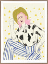 Cowgirl in Stars Canvas Art Print - With a nod to vintage western flair, this retro poster artwork by Jenny Liz Rome blends playful nostalgia with a modern bohemian twist. A stylish cowgirl, dressed in bold patterns and vibrant hues, leans back with effortless confidence against a backdrop of golden stars. The hand-drawn textures and lively palette make this a standout addition to any collection of boho style wall art or cool artwork prints. Whether you're curating a space filled with retro prints or adding a statement piece to your eclectic decor, this artwork delivers charm, attitude, and timeless appeal.