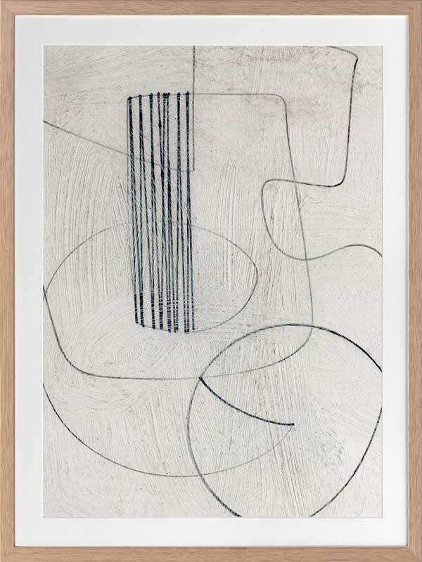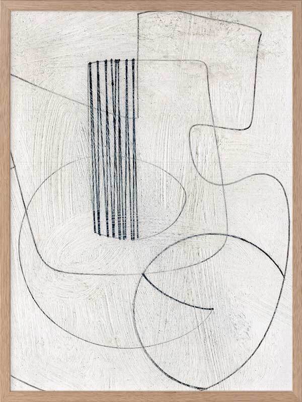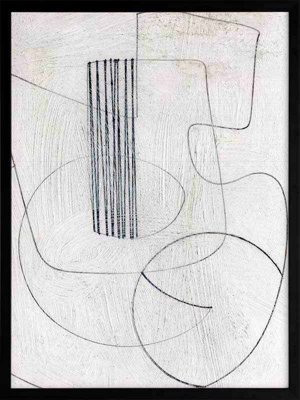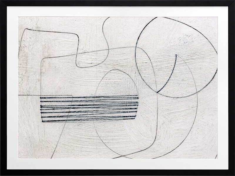 Crafted Framed Art Print - Bring some character to your space with this bold abstract print. It uses a gritty texture, with a striking contrast of black fine line strokes over a white textured base.