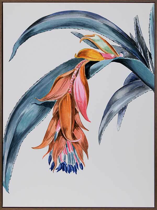 Crimson Bloom Dusk Canvas Art Print: A tropical flower provides a welcome pop of crimson red and violet amidst the sea of moonlit green at dusk. 2016 SPRING/SUMMER COLLECTION: ELEMENT