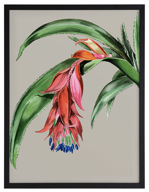 Crimson Bloom Framed Print: A tropical flower provides a welcome pop of crimson red and violet amidst the sea of green. 2016 SPRING/SUMMER COLLECTION: ELEMENT