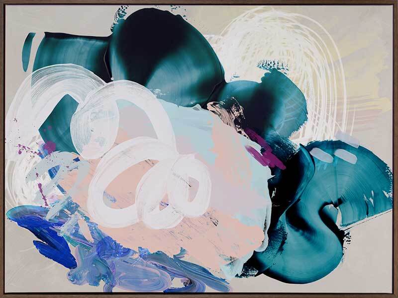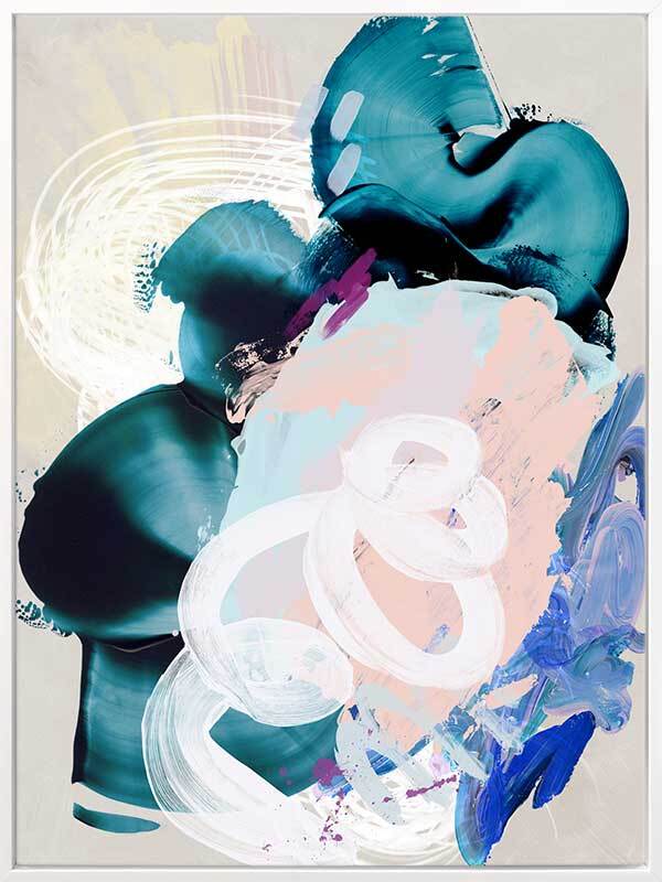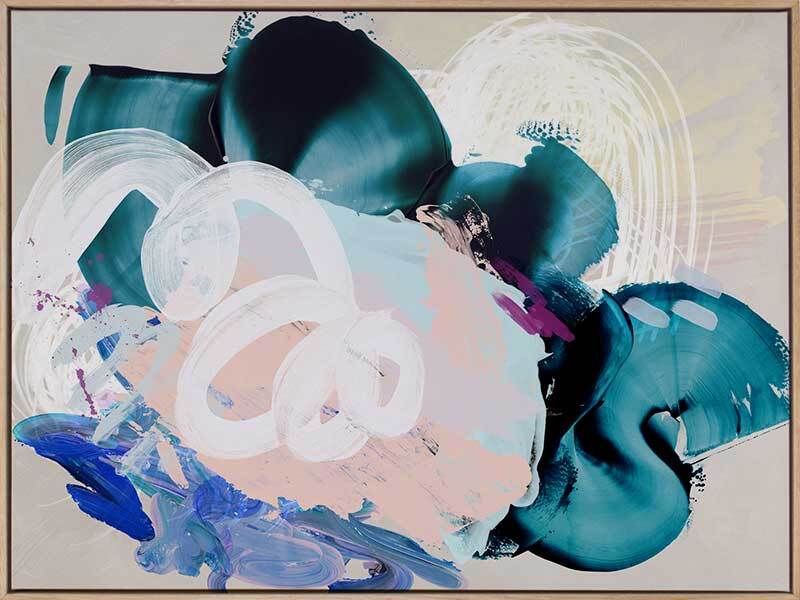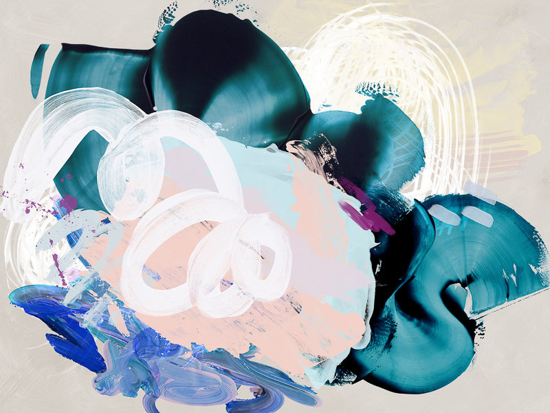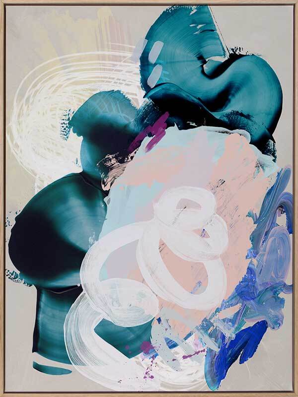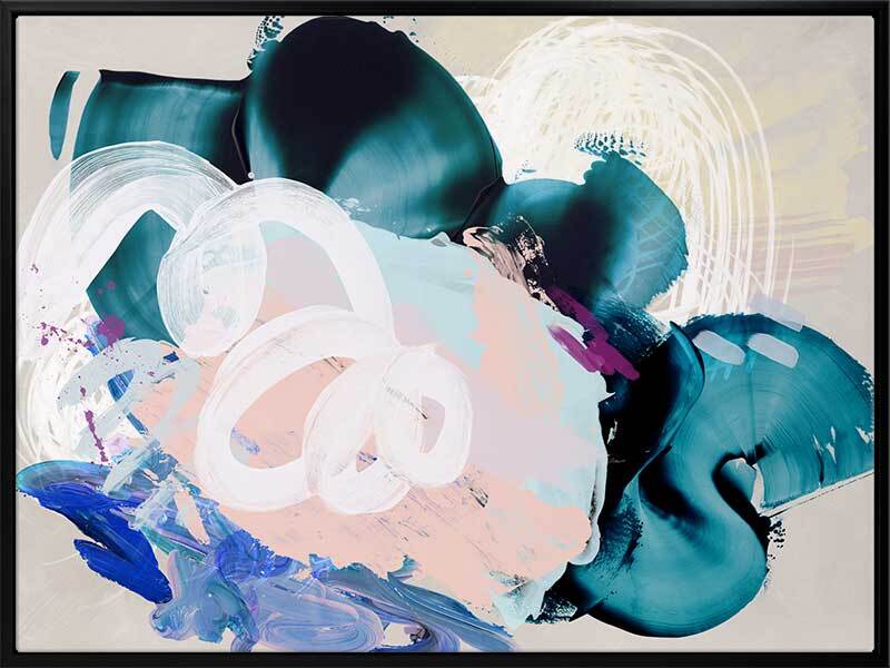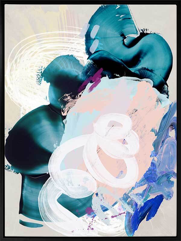 Curiouser Canvas Art Print: A playful abstract piece that overlays brushstrokes of different textures and opacity, featuring teal, pink and blue tones. 2019 SPRING/SUMMER COLLECTION: SOLSTICE
