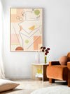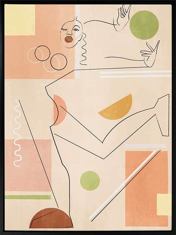 Dancer Canvas Art Print - Deconstruct the way you look at the world with this unique perspective of a female figure, captured in the middle of a liberated dance. Using fragmented shapes and lines, with unfinished details for a relaxed look, this abstract piece brings a sense of movement with its expressive design. A palette ranging from peach, pink, green, soft yellow and warm brown makes this piece the perfect balance between colourful and neutral to suit any interior style.