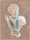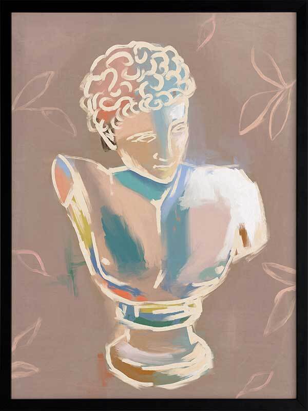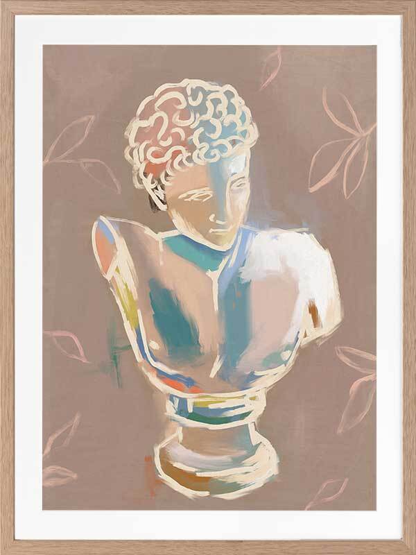David Framed Art Print - Bold yet playful, this light, bright and colourful illustration puts a modern spin on ancient Greek history. Featuring a painterly-style depiction of a male bust, in a kaleidoscope of pastel blues, teal and nude, against a fawn coloured background.