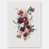 Decoupage I Fine Art Print: A feminine floral piece featuring a posy of purple, pink and burgundy blooms against a soft grey background. Pairs with Decoupage II. 2019 SPRING/SUMMER COLLECTION: SOLSTICE